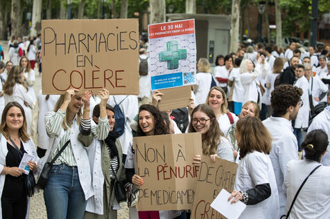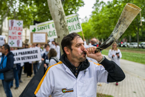 Pharmacists demonstration, the community pharmacists' unions have launched a national strike movement for the day of May 30, 2024, they are demanding a financial increase and protesting against drug shortages and are worried about rumors of deregulation of the pharmacy network.