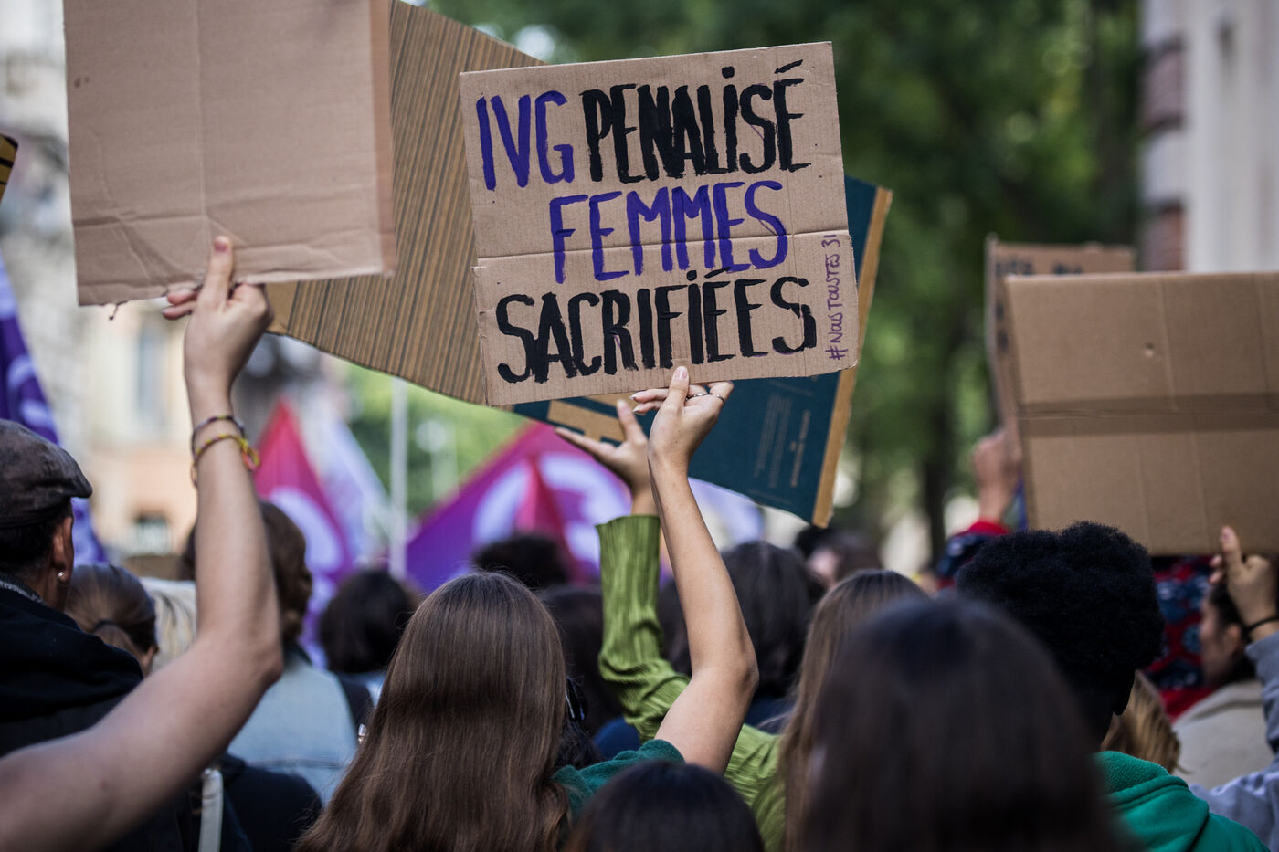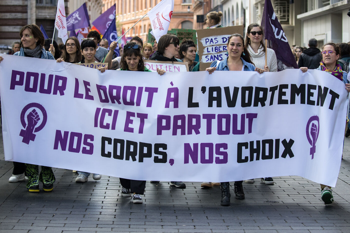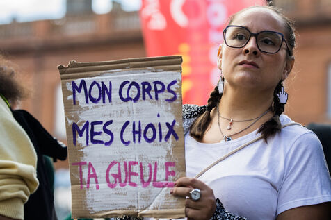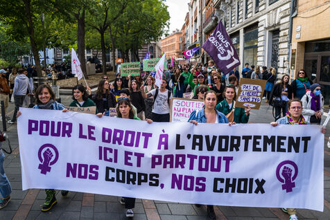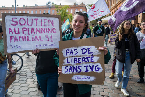 France, Toulouse, 2024-09-28. People demonstrate on the Place du Capitole to denounce the reduction in Family Planning subsidies by the Occitanie regional council.