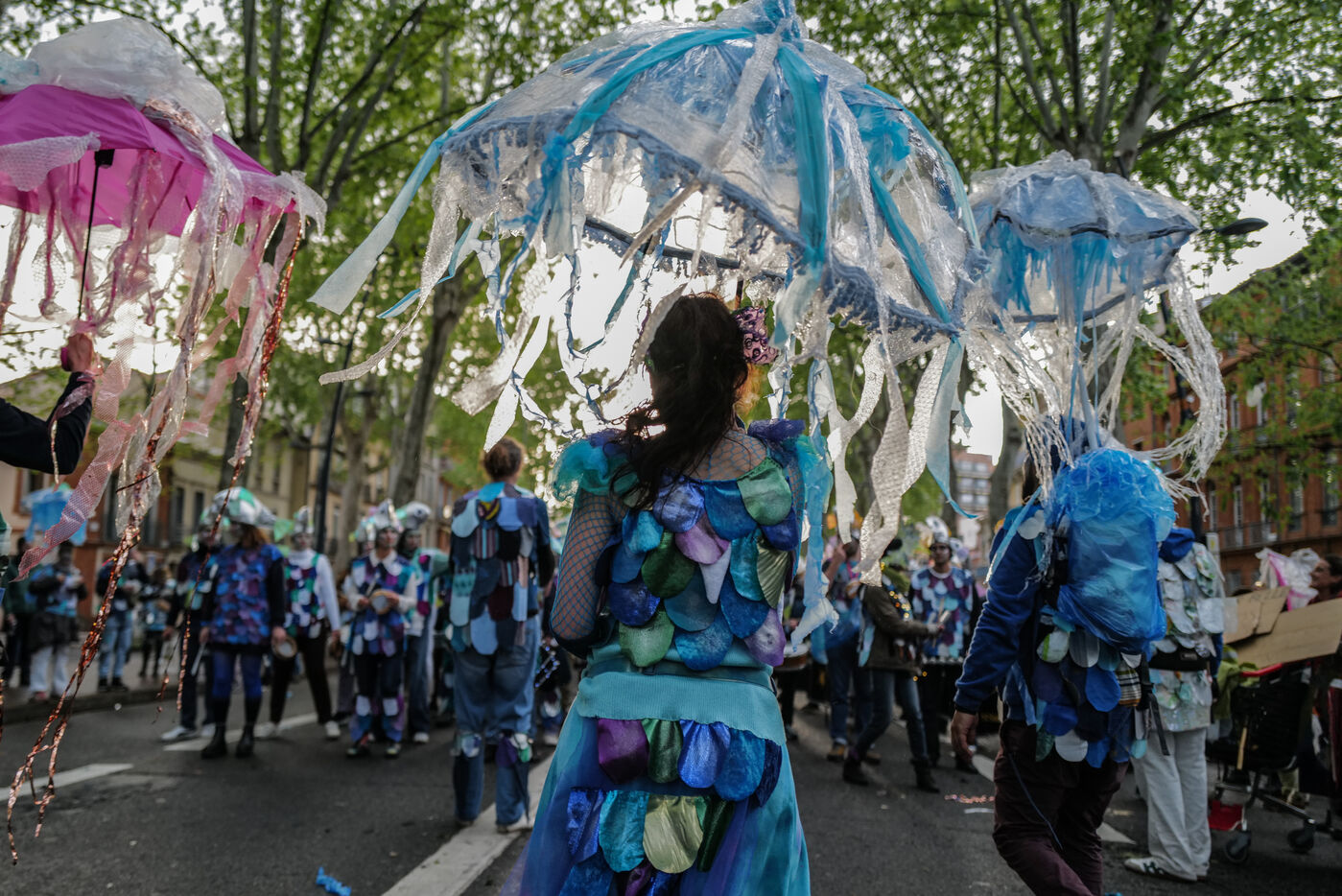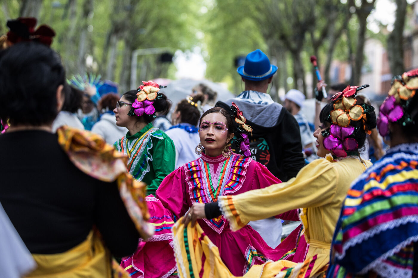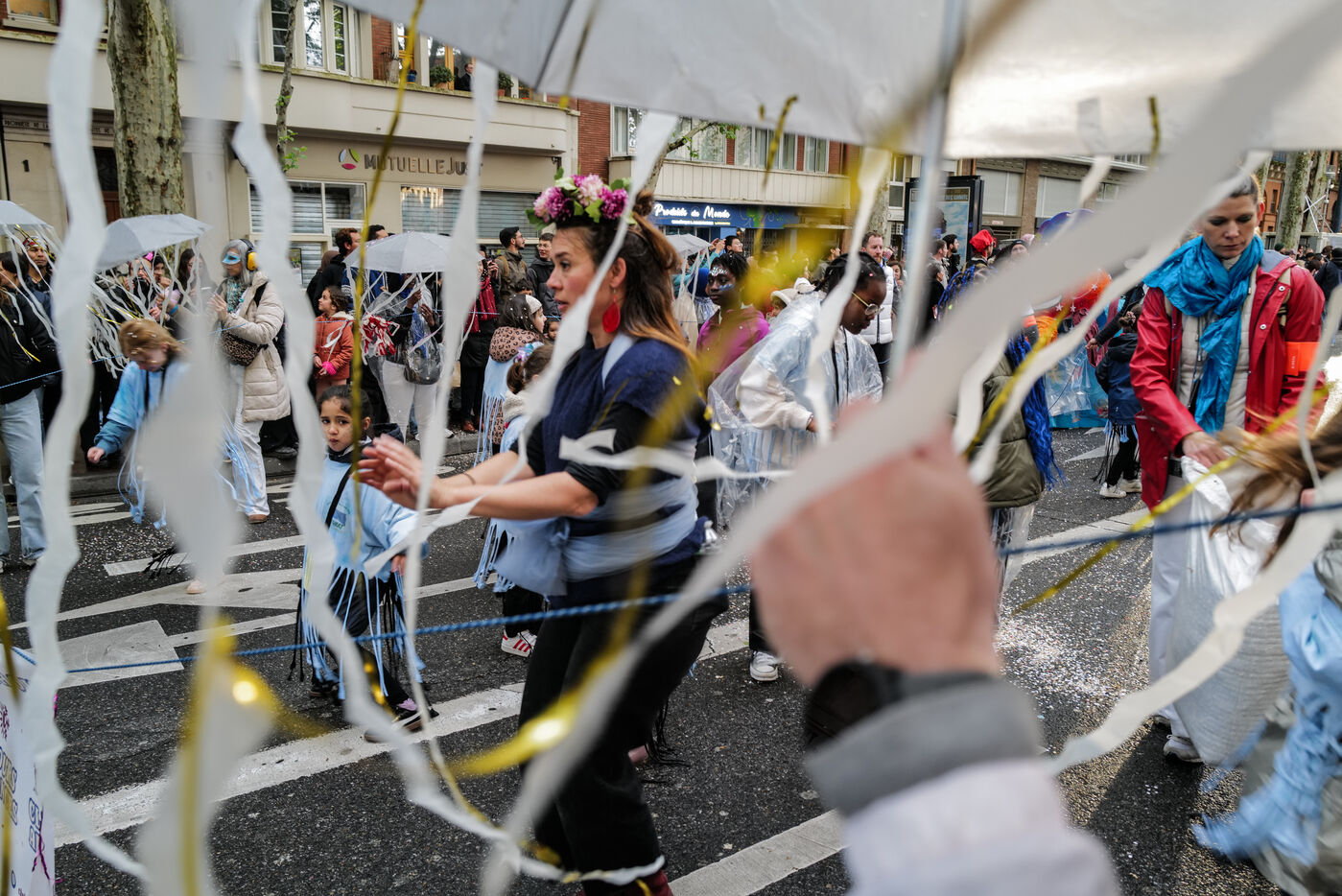 France, Toulouse, 2025-04-19. Festive and colorful atmosphere takes place in the streets of downtown Toulouse in the south of France during the Toulouse Carnival organized by the Unified Carnival Organization Committee (COCU).