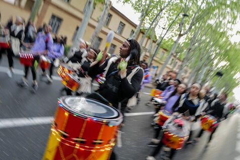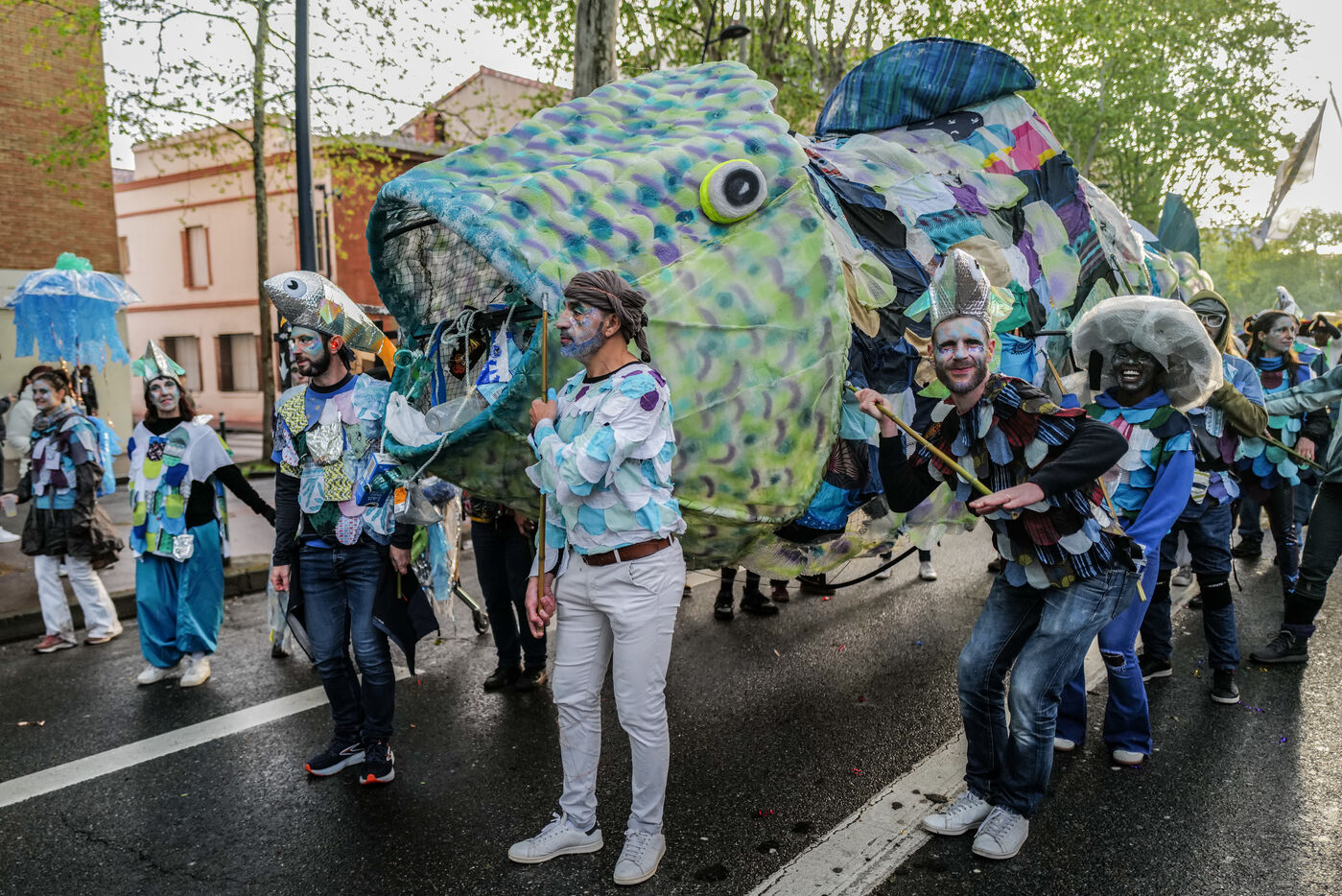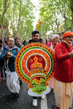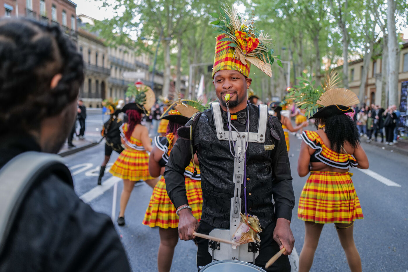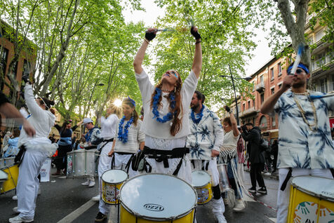 France, Toulouse, 2025-04-19. Festive and colorful atmosphere takes place in the streets of downtown Toulouse in the south of France during the Toulouse Carnival organized by the Unified Carnival Organization Committee (COCU).