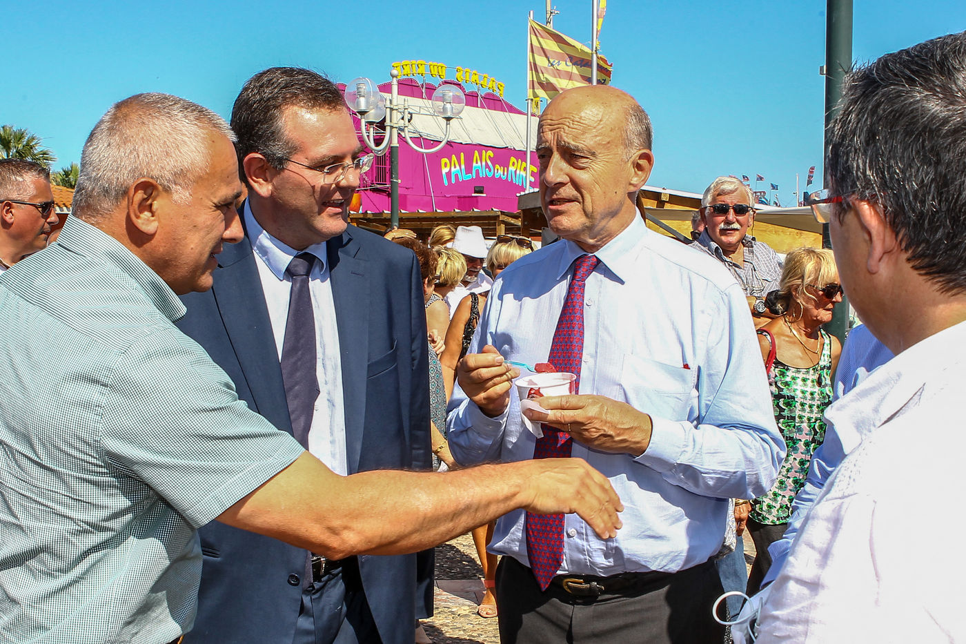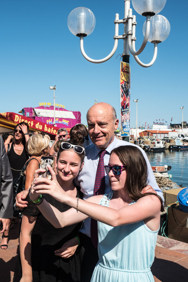 Alain Juppé, Maire de Bordeaux et candidat aux primaires des républicains alors en campagne politique dans le département des Pyrénées Orientales.