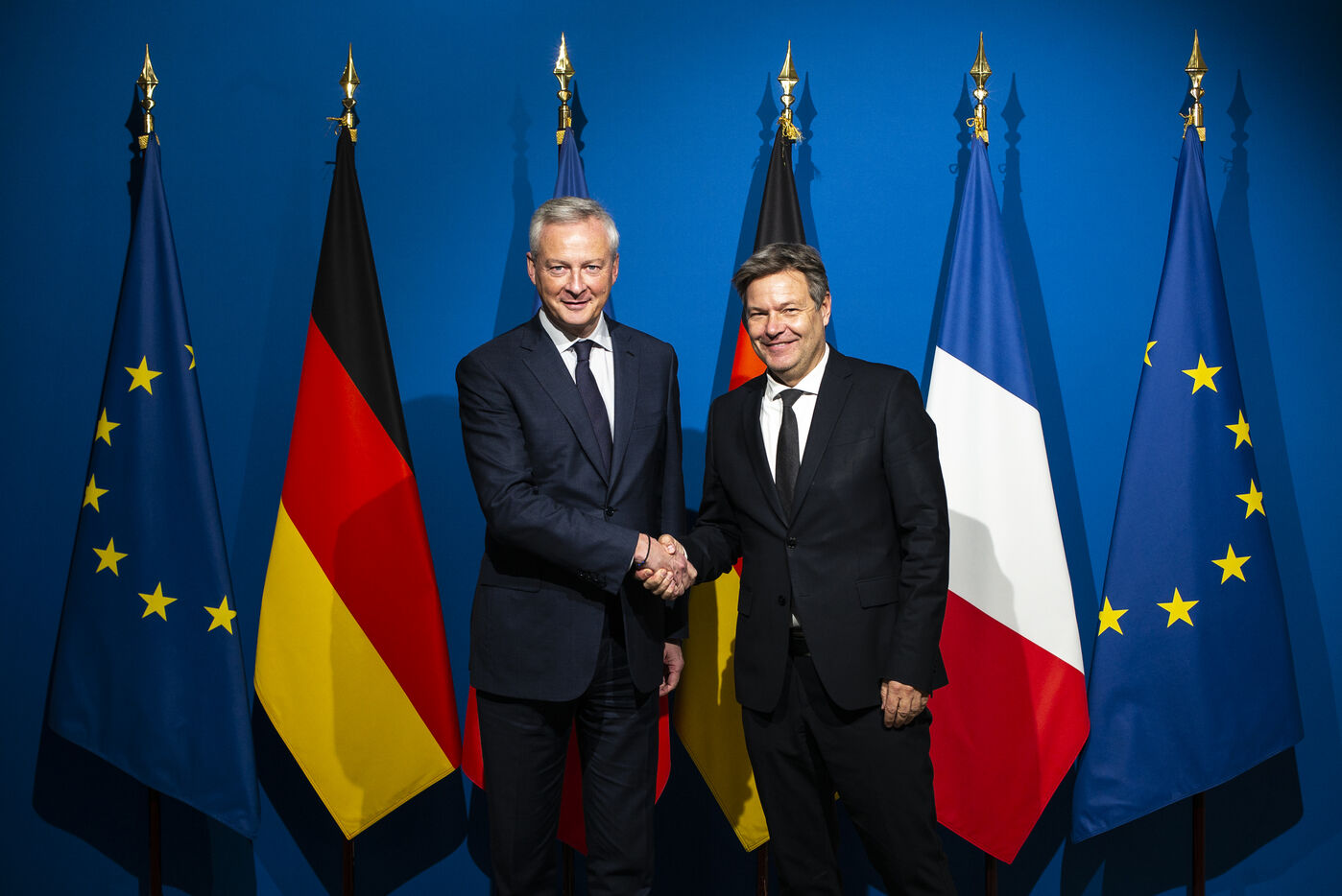 Point presse de Bruno Le Maire, ministre de l Economie, des Finances et de la Souveraineté industrielle et numérique, et Robert Habeck, vice-chancelier, ministre de l'Économie et de la Protection du Climat de la République fédérale d Allemagne suite à leur réunion de travail au ministère de l'Économie et des finances à Bercy
