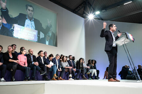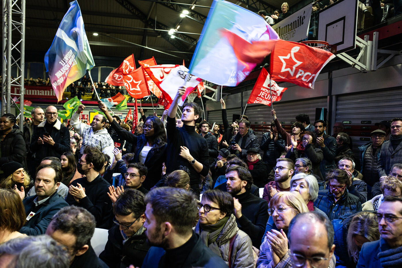 Meeting de la NUPES au gymnase Japy suite à la nouvelle réforme des retraites mit en place par le gouvernement qui recule l'âge légal de départ à la retraite à 64 ans.