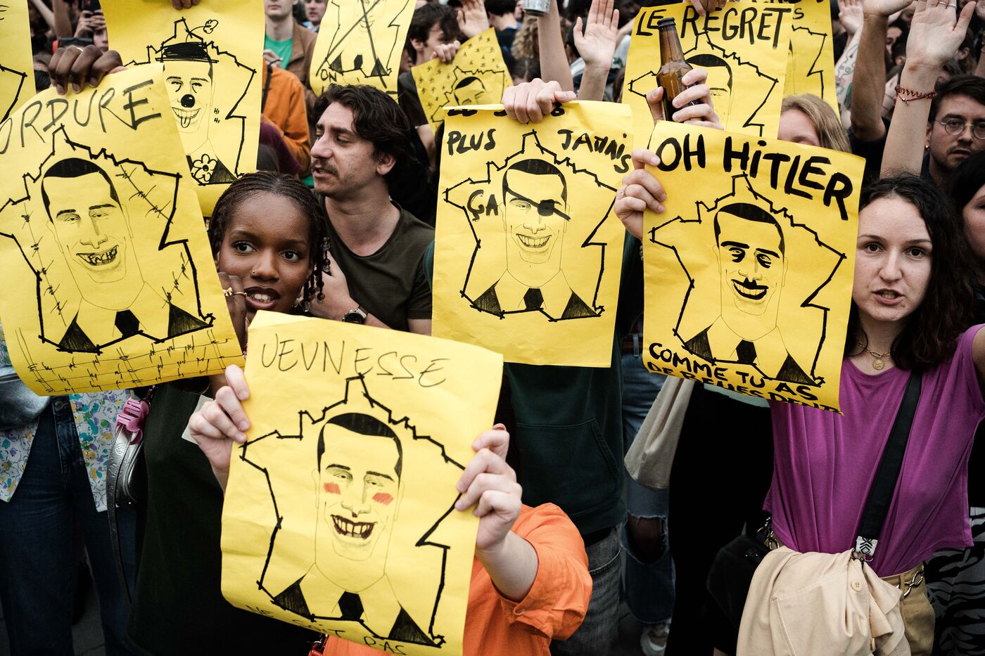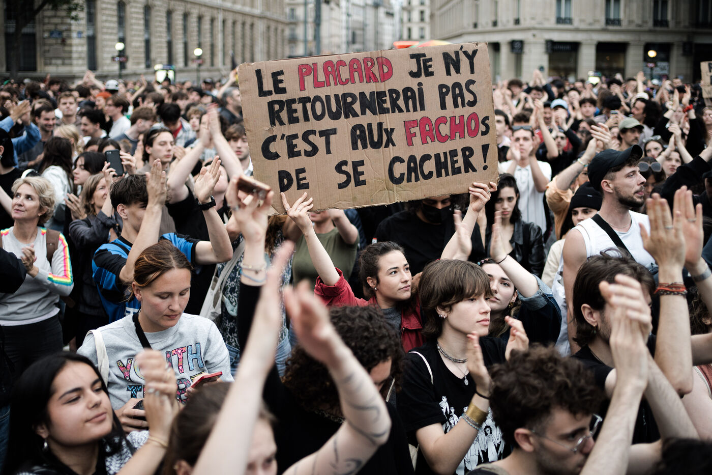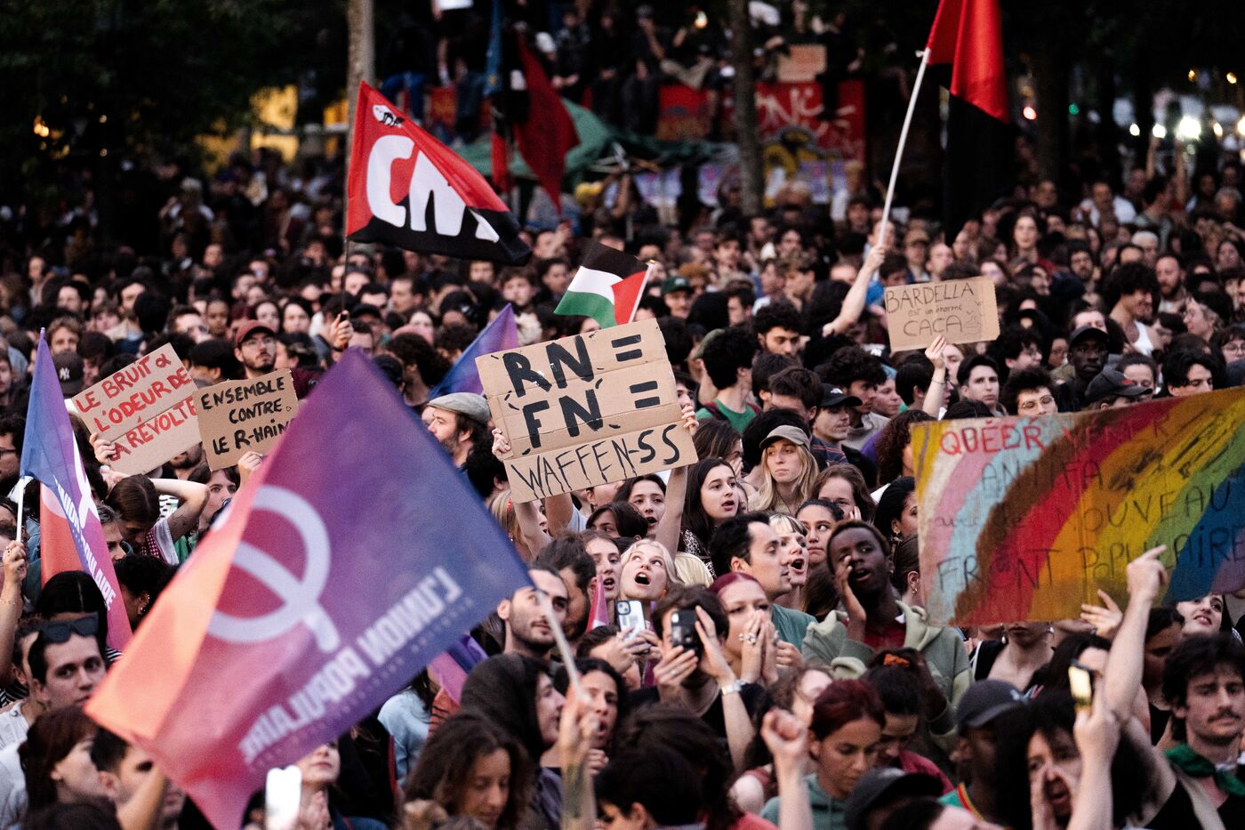 Suite au résultat du premier tour des élections législatives, le nouveau Front populaire a appelé à une manifestation sur la place de la république contre le partie d'extrême droite français, le rassemblement national.
