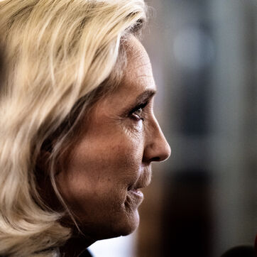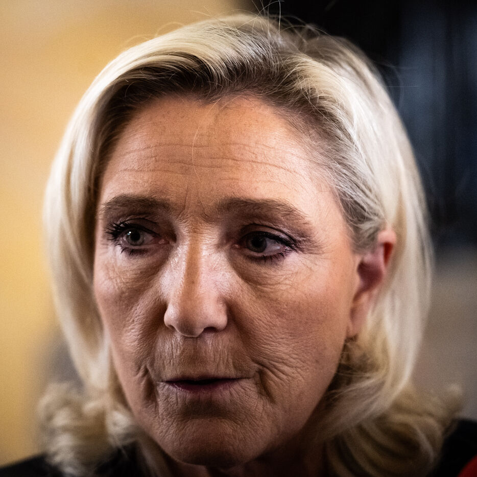 Marine de la Pen présidente du groupe du rassemblement nationale (RN) est interviewé avant le débat à l'Assemblée nationale sur la guerre Iran-Israël dans le palais bourbon.