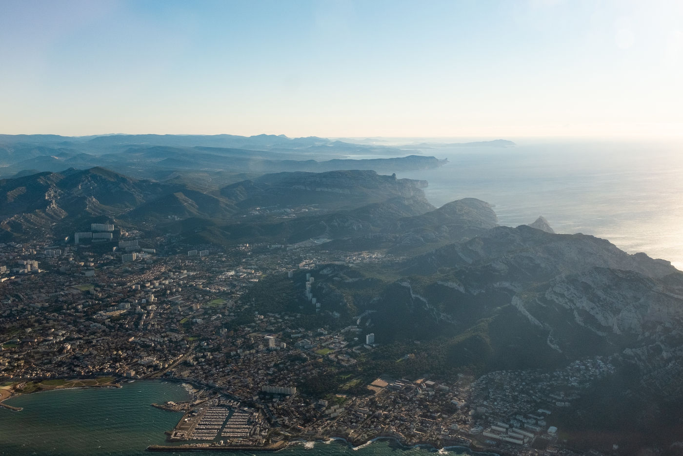 Aerial views of the city of Marseille from a London-Marseille flight on 3 December 2021.