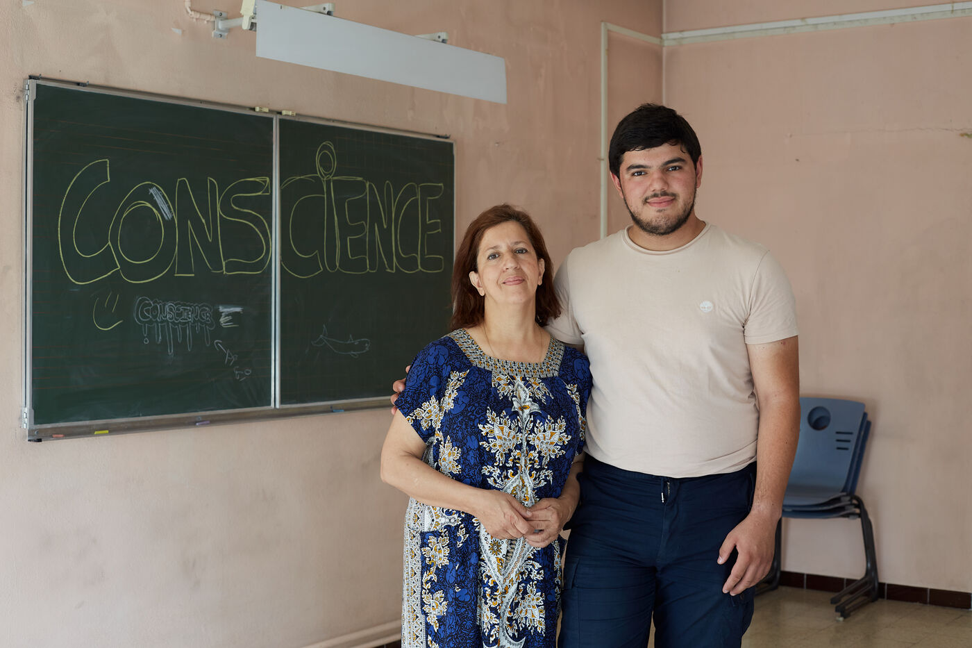 Amine Kessaci and his mother Ouassida at the Conscience association. After the death of his brother Brahim in a drug-dealing dispute in 2020, Amine Kessaci launched the Conscience association to help improve living conditions in the northern quarters of the city. Photography by Gregoire Bernardi / Hans Lucas
