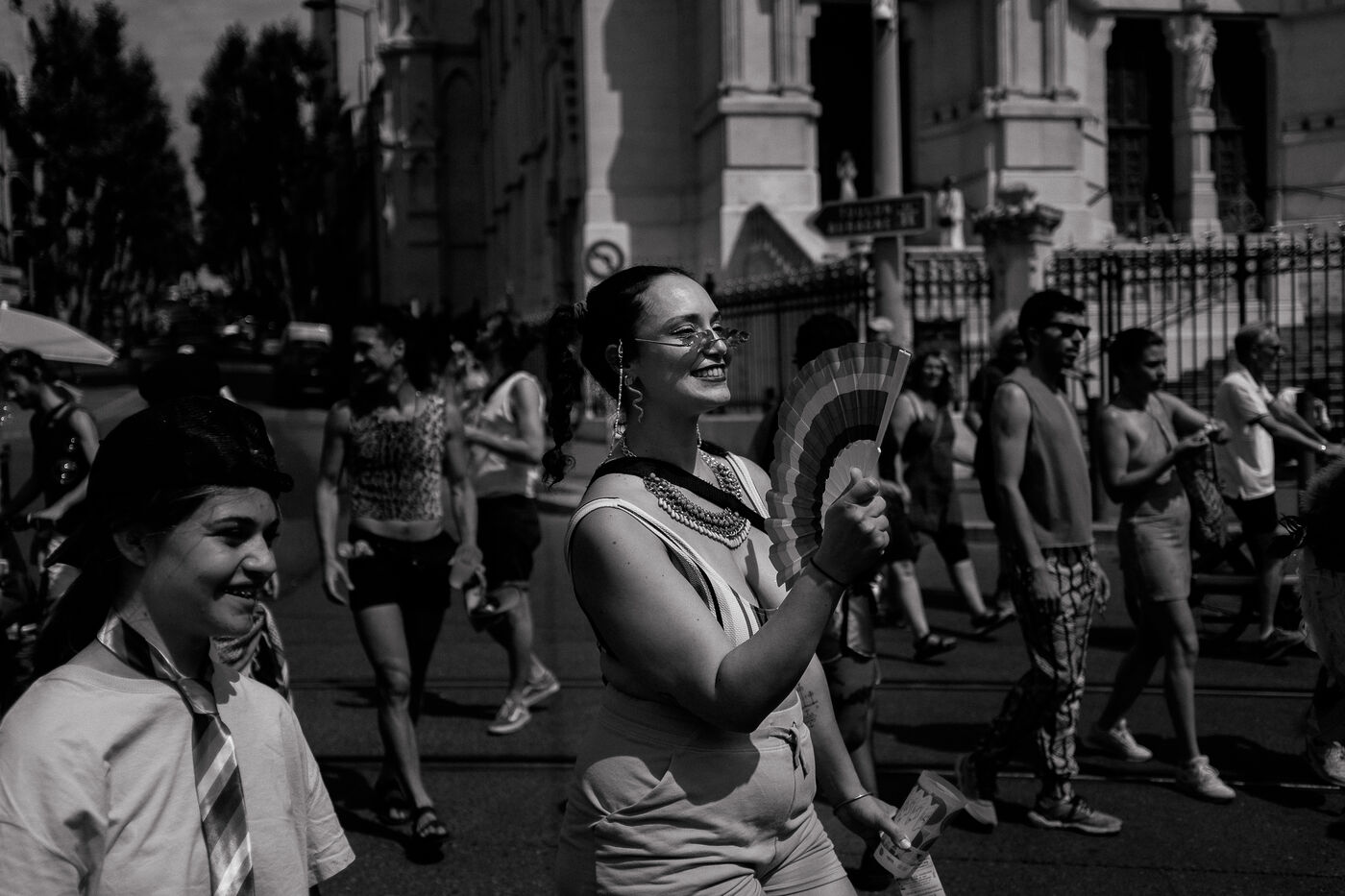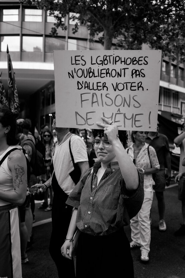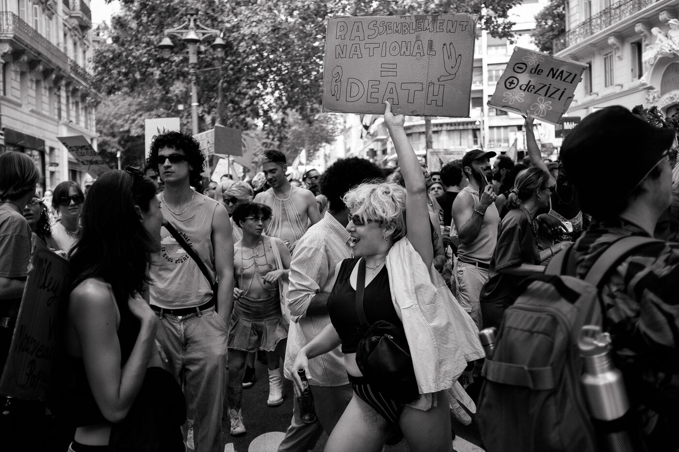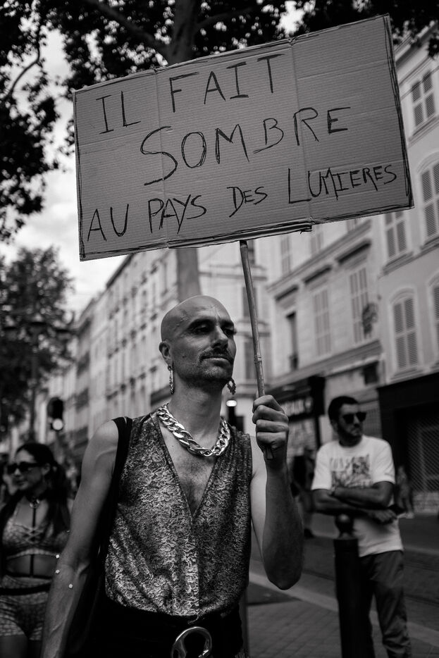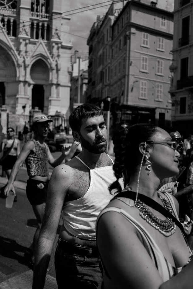 Marseille, 6 July, 2024. Several thousand people gathered for the Marche des Fiertés, which started at the Palais Longchamp and ended at the Vieux-Port. The date for the event had been set months ago, to mark the end of Pride Month, which celebrates the LGBT+ (lesbian, gay, bi, trans) community. The Marseille Pride was therefore held on the eve of the second round of the early parliamentary elections. The slogan chosen this year was "Shout out the silence", to assert their rights and denounce discrimination. Photography by Gregoire Bernardi / Hans Lucas.
