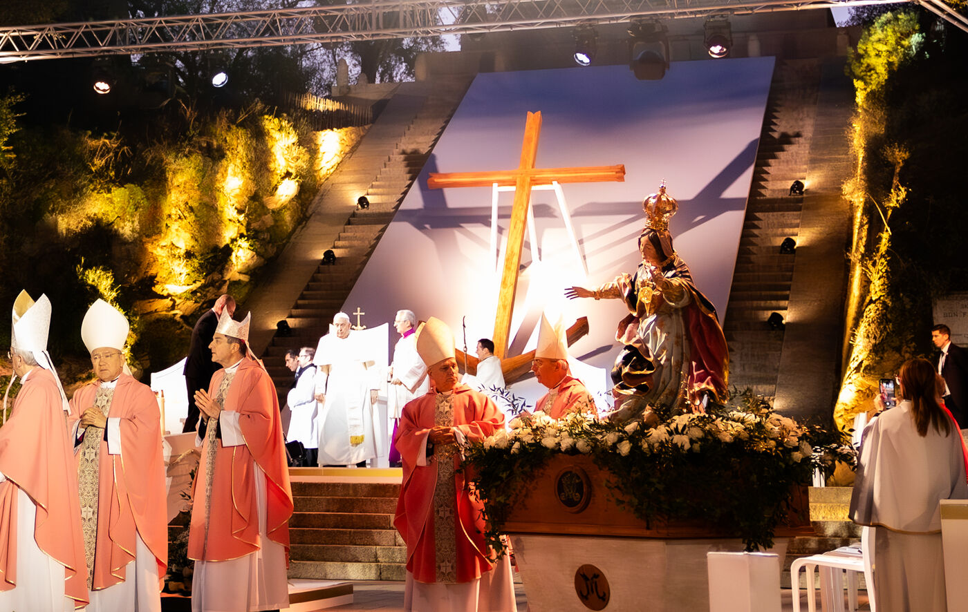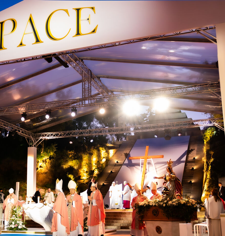 On December 15th, 2024, in Ajaccio, a moment of profound historical significance quietly unfolded before the gathered faithful, under the protective gaze of the Madonuccia. As Pope Francis concluded the ceremony, the man who would soon become Pope Leo XIV stood humbly beneath the Madonuccia, under the shadow of the cross and the word “Peace” overlooking the scene.
