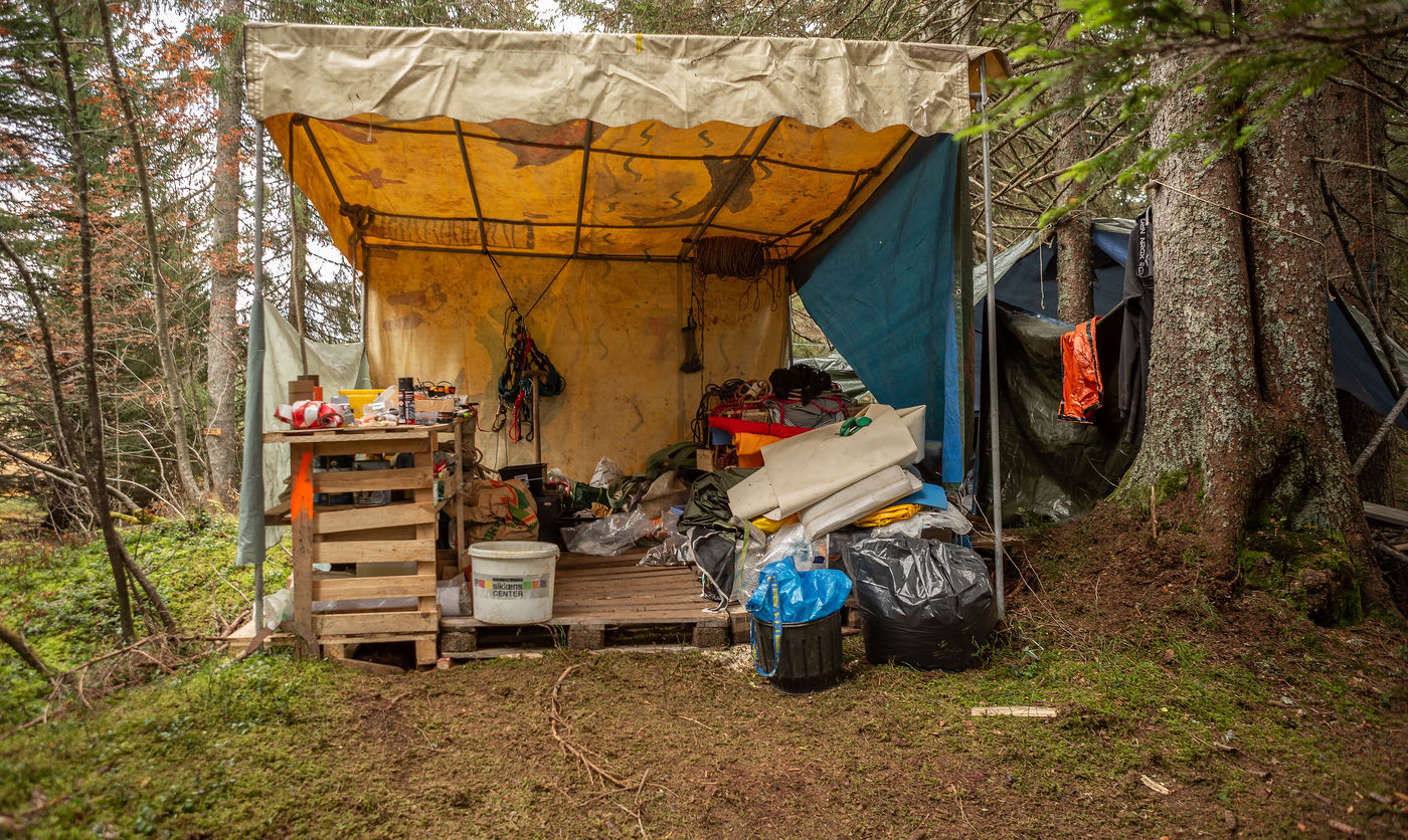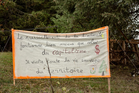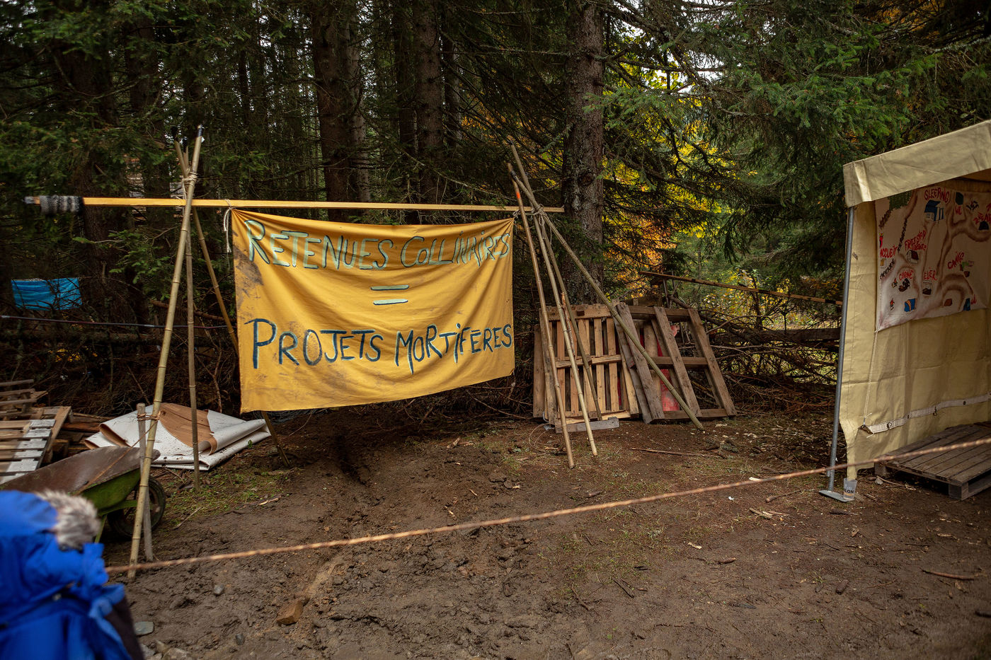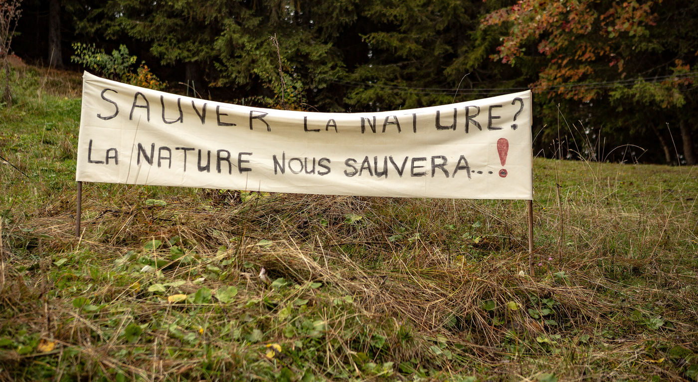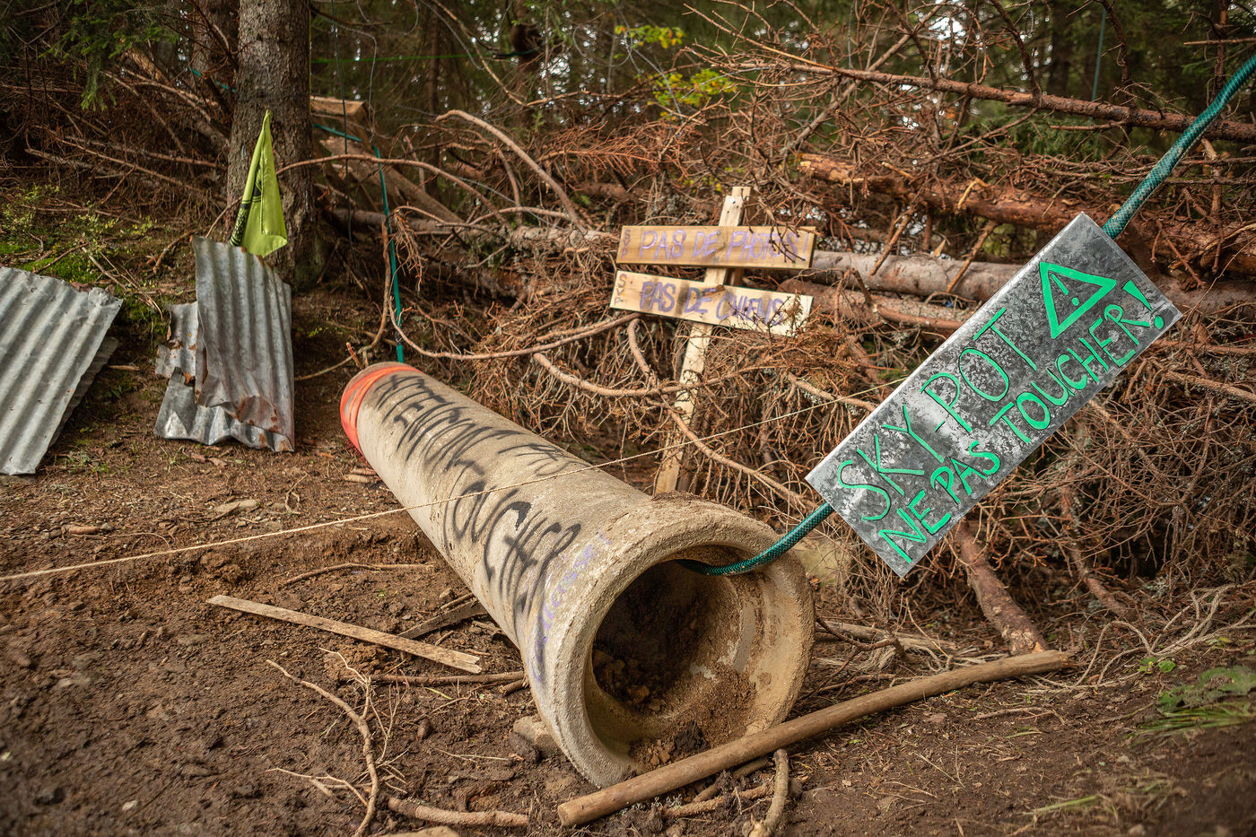In the Colombière wood, on the plateau of Beauregard, a ZAD from Exctinction Rebellion acitivists is occupying the forest. It intends to fight against the destruction of the natural place because of the hill water reservoir project that should supply the local ski resort snow cannons. Illustrations.