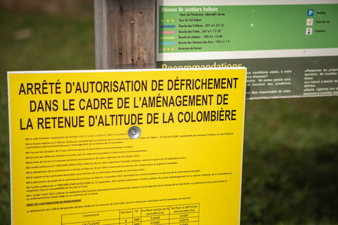 Dans le bois de la Colombière, sur le plateau de Beauregard, une ZAD constituée de militants d'Exctinction Rebellion s'est formée. Elle compte lutter contre la destruction d'une forêt au bénéfice d'une retenue collinaire visant à approvisionner en eau les canons à neige de la station de ski voisine. Images d'illustration.
