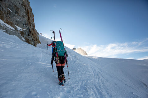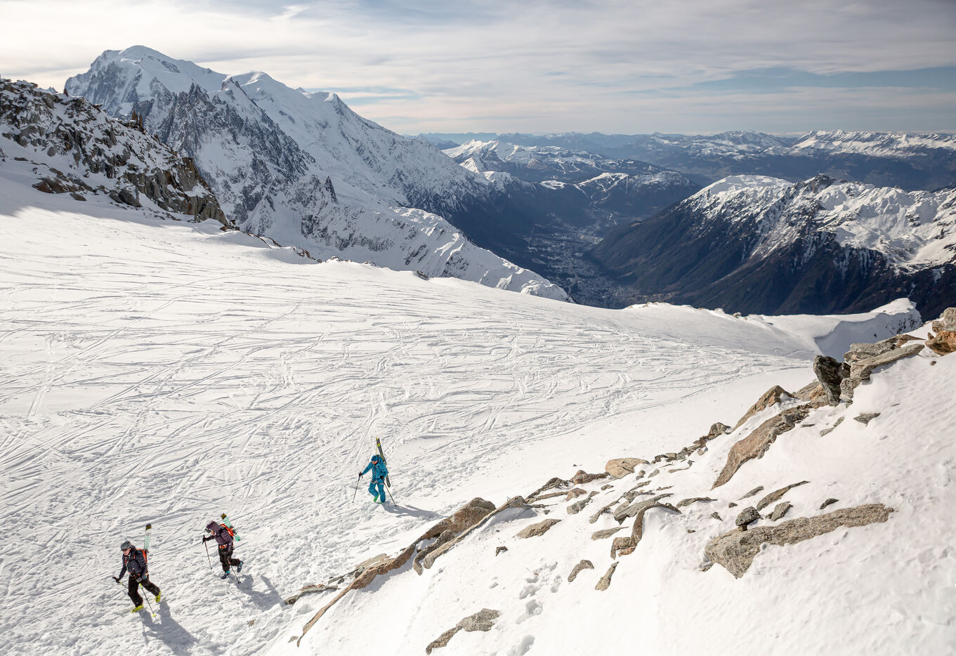 A daily ascent at the Grand Montets pass, near the "Petite Verte" in the Mont-Blanc mountains.