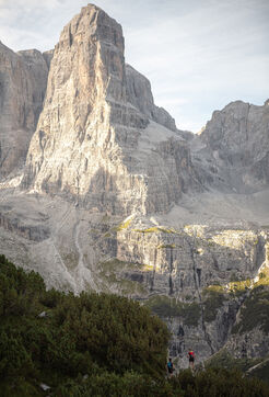 Pictorial tale of a hundred kilometers loop traveled in a few days by a small group of runners to circle the incredible massif of Dolomitis Di brenta, Italy.