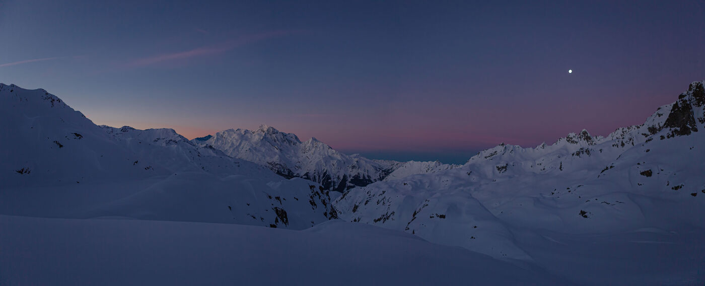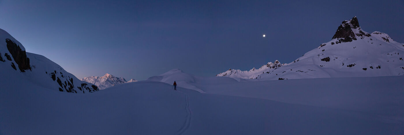 Climb the Ruitor, meter after meter, alone and silent, a dark and icy night, accompanied by the awakening of the sun. Ski ascent by the glacier du Grand.