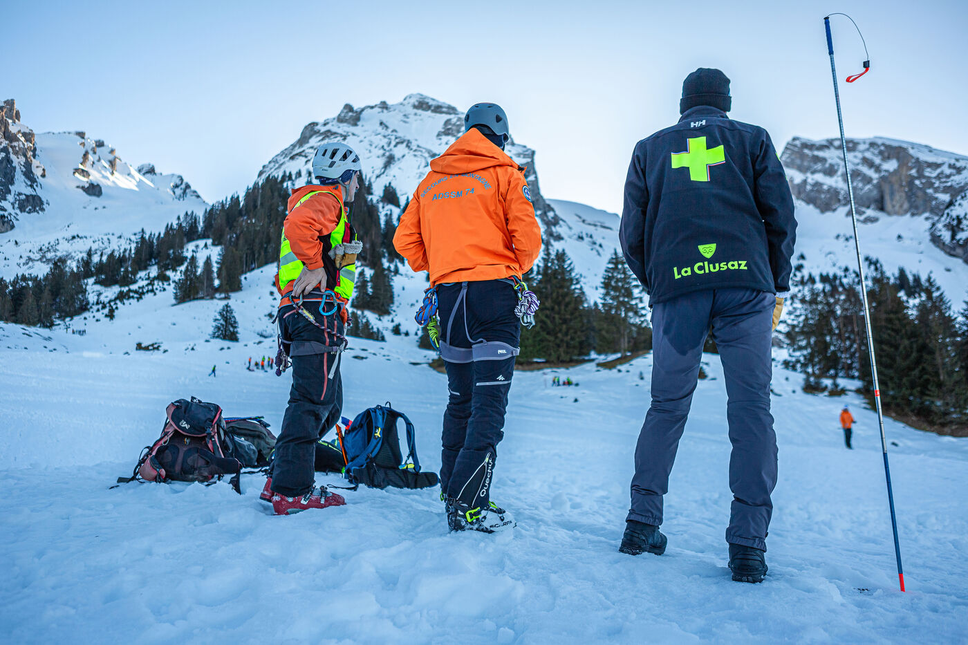 Les équipes du secours en montagne de Haute-Savoie (ADSSM74) s'entrainent à la recherche de victimes avalanchées et aux manipulations de cordes pour leurs interventions hivernales sous la supervision du PGHM et du GMSP74.
