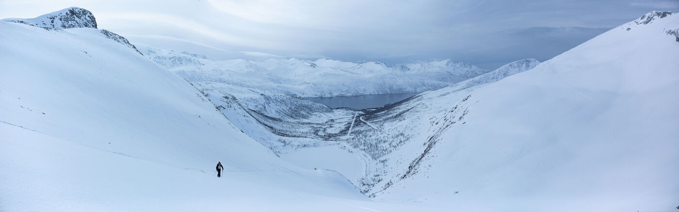 Located about 100 kilometres west of Tromsø, the island of Senja, connected to the mainland by a bridge, offers a wild and much less frequented places than the neighbouring Lyngen Alps. Images taken during various skitours between fjords and arctic storms.