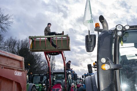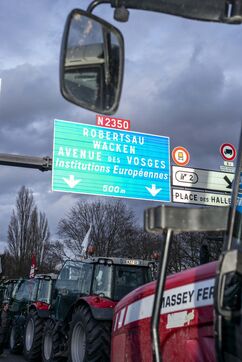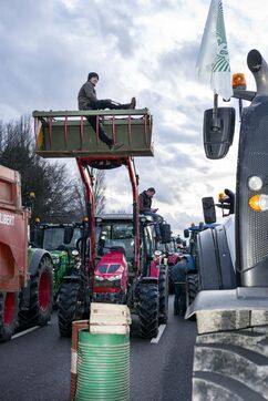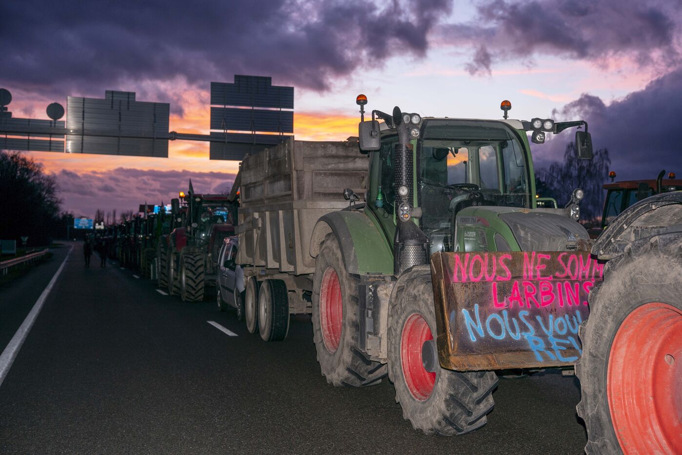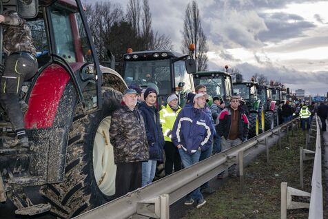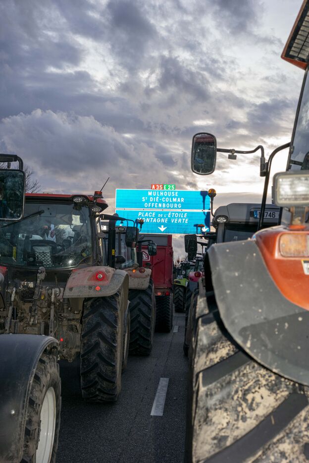 Blockade of the A35 near Strasbourg by farmers from Bas-Rhin (67) on Wednesday, January 24, 2024. Organizers (FDSEA, attended by 67 president Franck Sander) announced that 500 tractors and as many farmers had come to spend the night on the road, to mark their disagreement with the government and underline their concerns about the future of their profession.