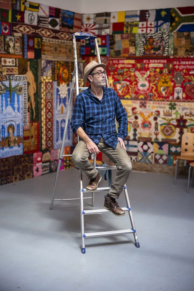 In Strasbourg, Philippe Jacq's giant patchwork weaves a collective memory. Made from fabrics gleaned by the artist from souks and flea markets around the world, the immense fresco lining the walls of Strasbourg's Apollonia space draws a bridge between East and West. The work can be seen until May 5. When you enter Philippe Jacq's lair, it's hard to say what strikes you first: the diversity of colors and materials, or the harmony that emanates from this bazaar of multicolored thrift. It's also hard to predict what will catch the eye first: the brightly painted hunting tapestry depicting a gangster with a severed rifle, the flags of imaginary countries, the fabric eyes and mouths that seem to spy, whisper or laugh out loud ?