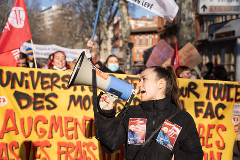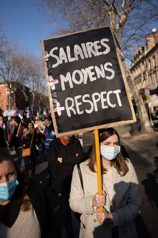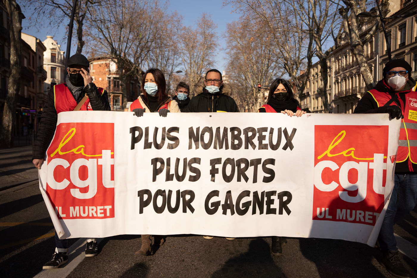 Le 27 janvier 2022, les manifestant?e?s toulousain?e?s ont fait clairement connaître leurs revendications à l?occasion de la journée interprofessionnelle pour la hausse des salaires organisée à l?appel des organisations syndicales CGT (Confédération générale du travail), FO (Force ouvrière), FSU (Féderation syndicale unitaire) et Solidaires.