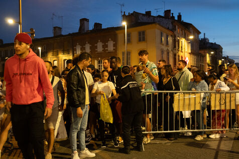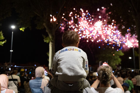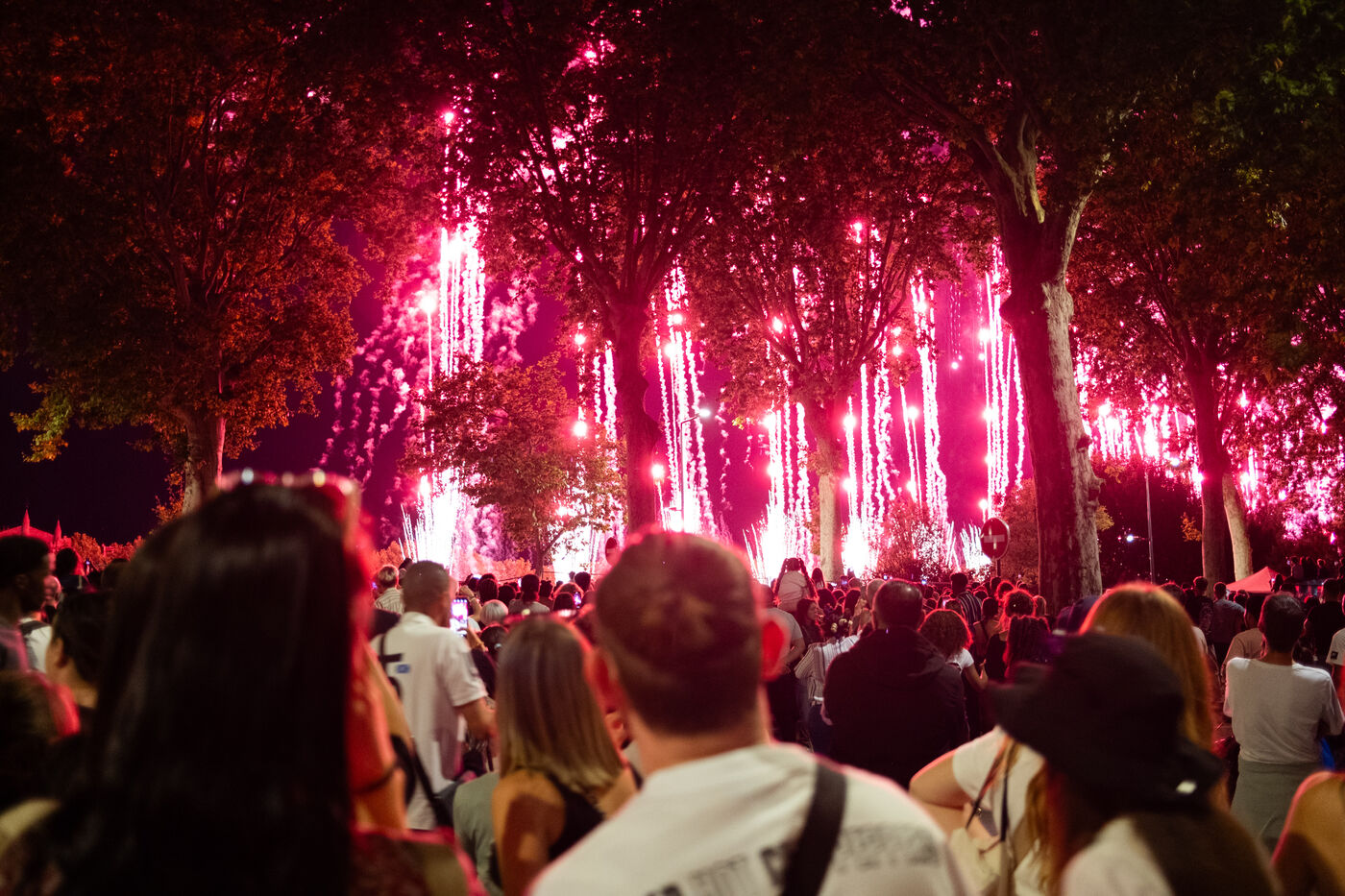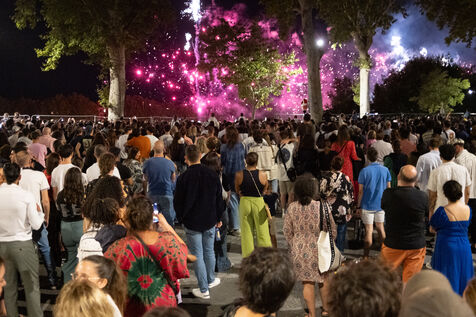 A dense crowd of onlookers gathered on the Garonne baks in Saint-Cyprien in order to attend the firework display on the eve on France's National Day.