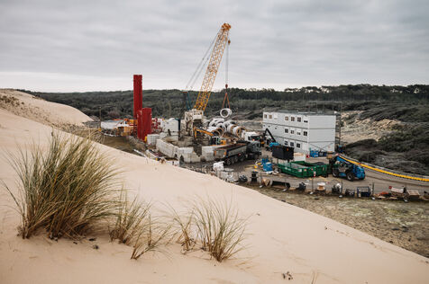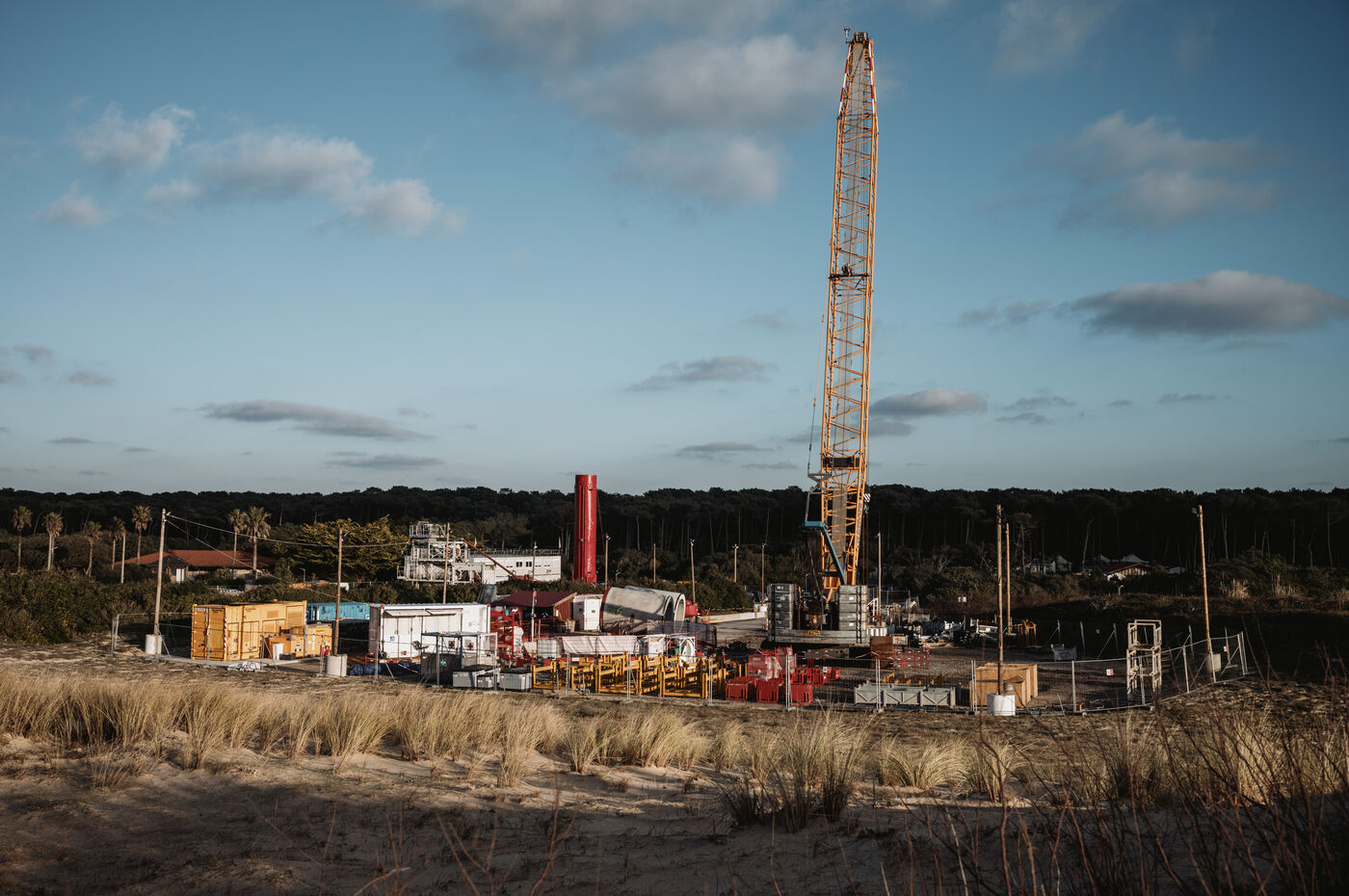 France, Soorts-Hossegor, 14 janvier 2025, Des militants écologistes ont investi des arbres dans la forêt entre Seignosse et Hossegor (Landes) pour protester contre le projet retenu par RTE (Réseau de Transport d'Electricite) pour son chantier d'interconnexion d'une ligne Très Haute Tension (THT) entre la France et l'Espagne. Quatre câbles seront enterrés sur 400km entre le nord Gironde et Bilbao. Dans les Landes, les riverains sont très inquiets des conséquences sur leur santé et l'environnement.