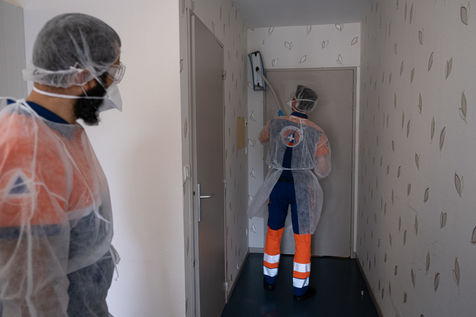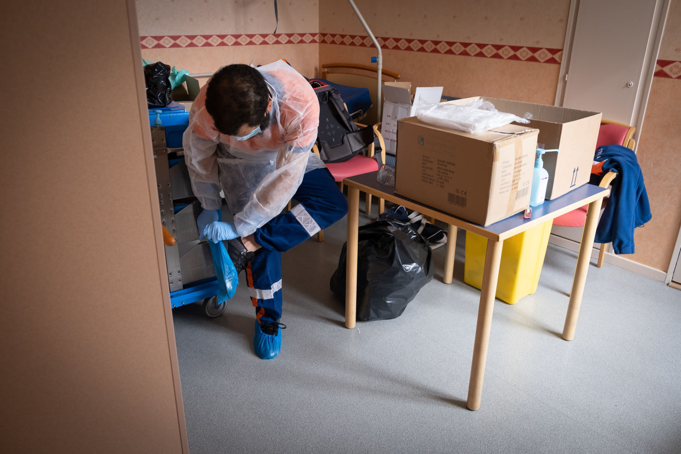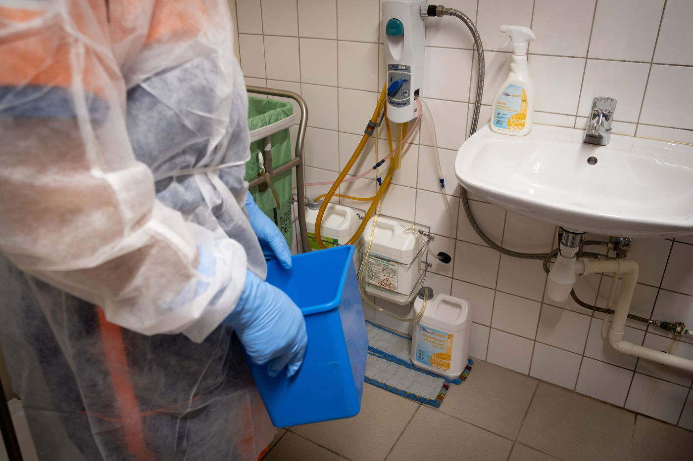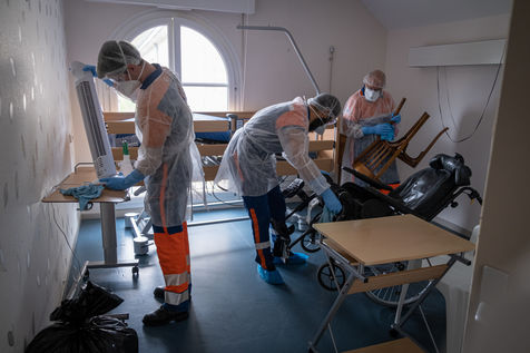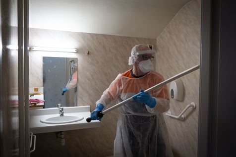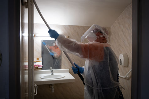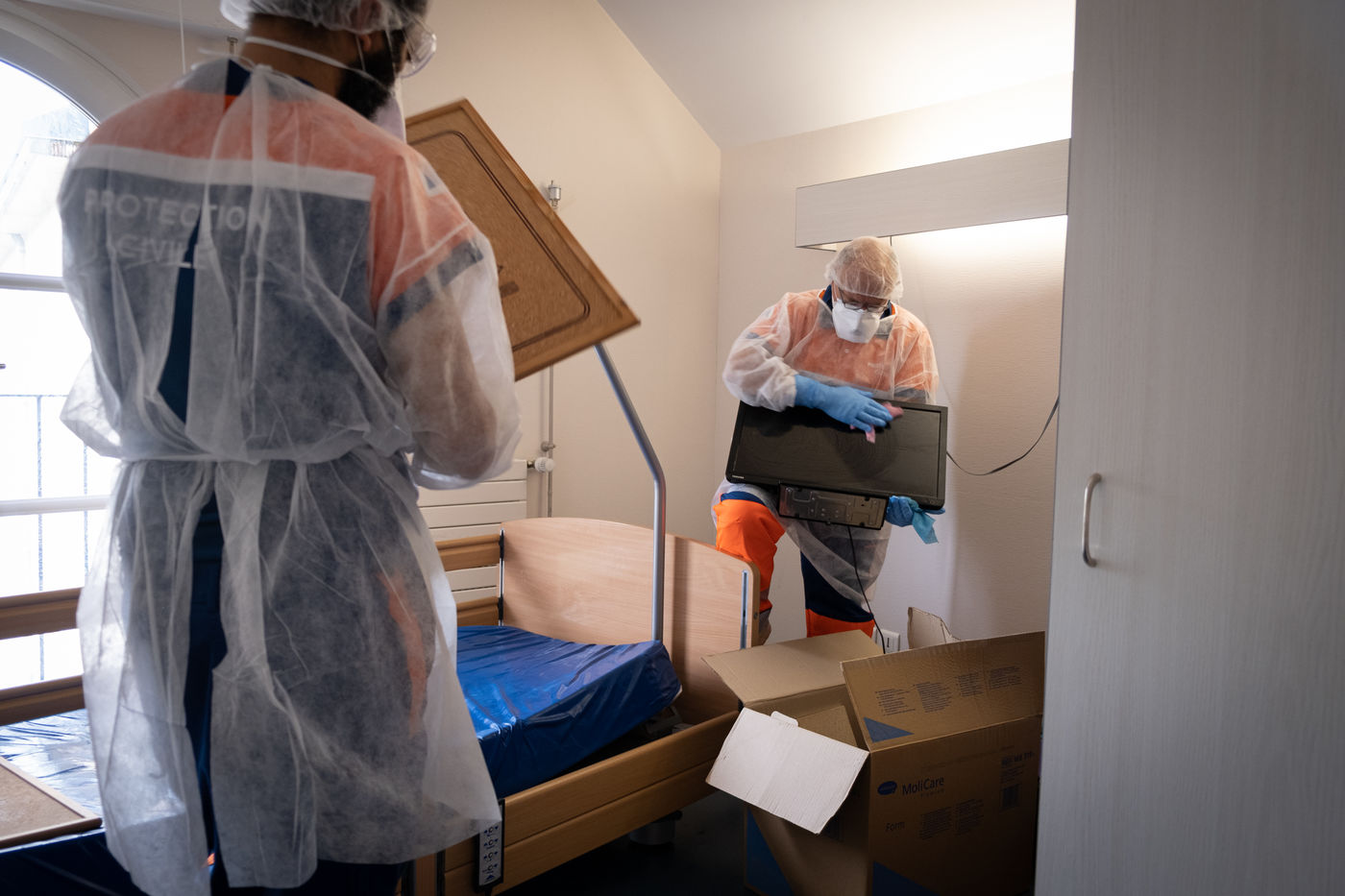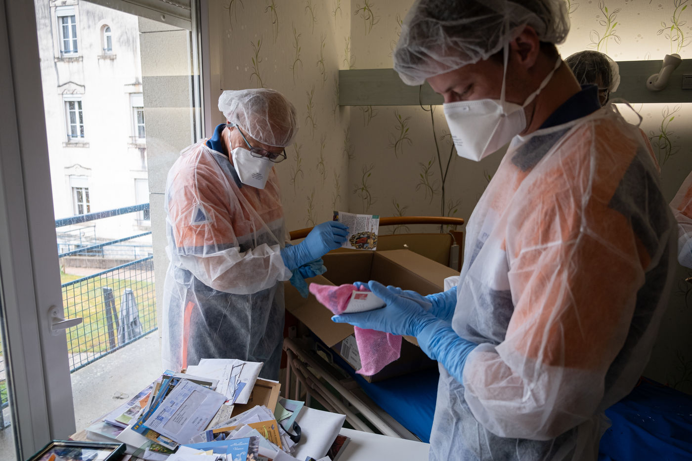 At each death in the EHPAD, the volunteers of the Protection Civile des Vosges completely disinfect the resident's room. Each personal item is then scrupulously cleaned to be later returned to the family of the deceased. The furniture is also completely disinfected as well as the walls and floor of the room. The protocol takes place in two stages: a first complete disinfection which can last several hours, then, 24 hours later, the volunteers of the Civil Protection carry out a second complete disinfection of the room.