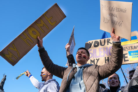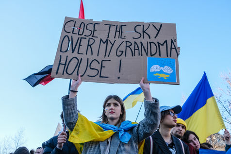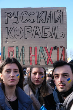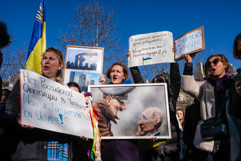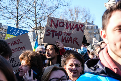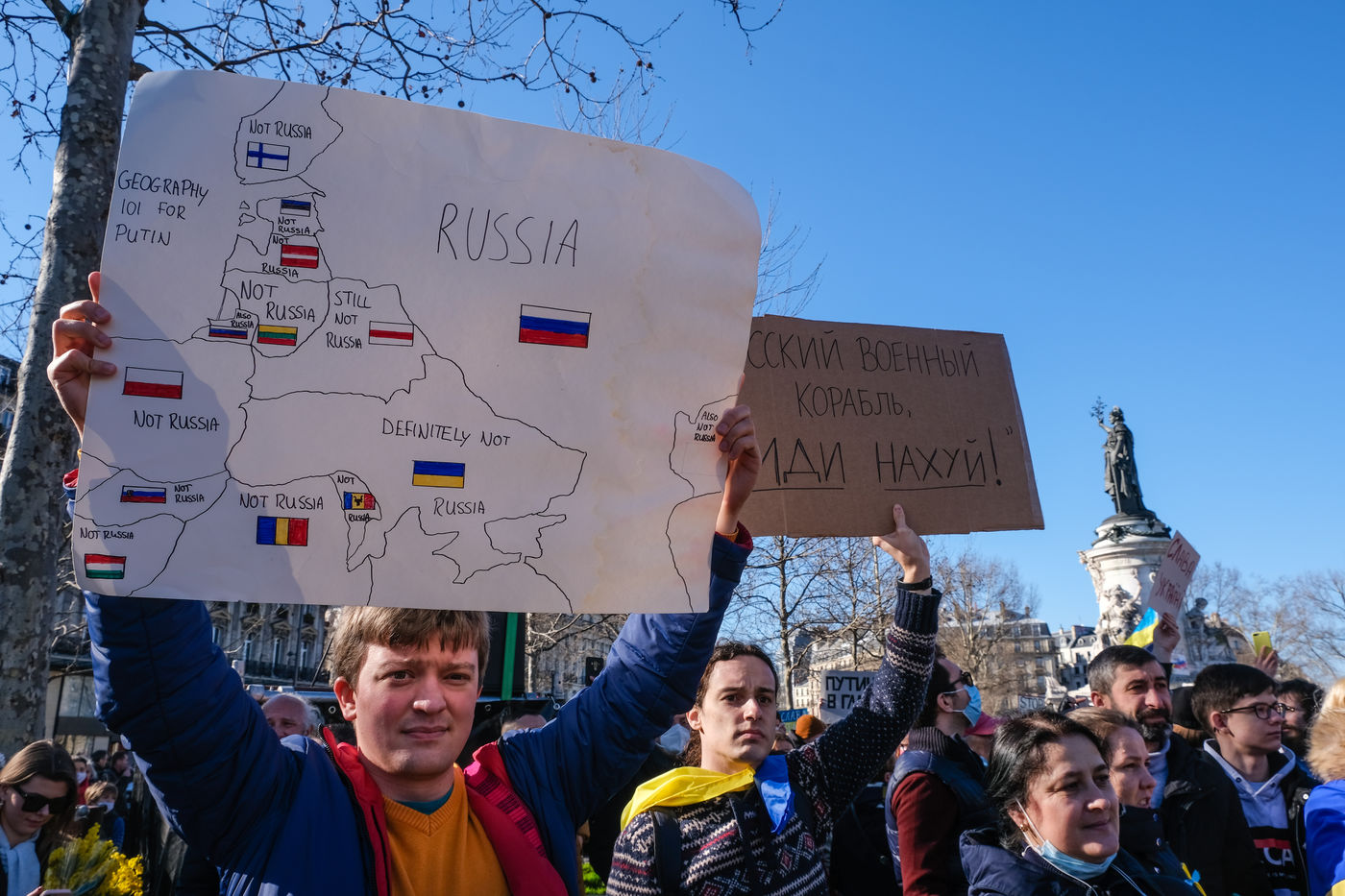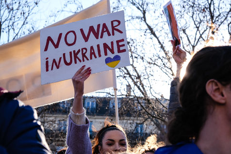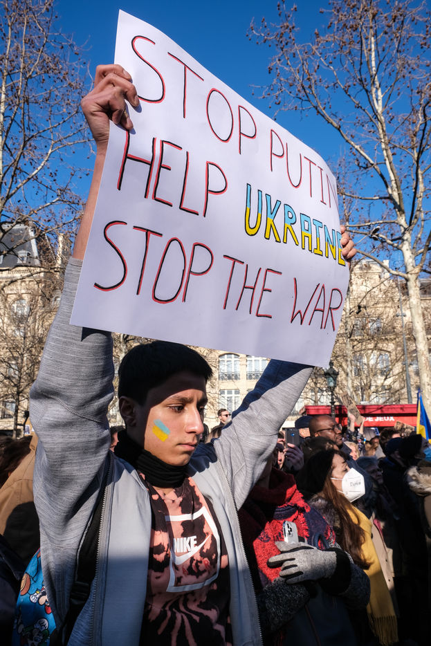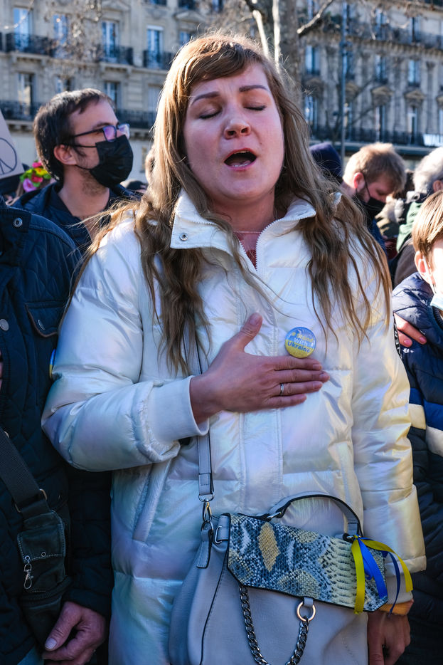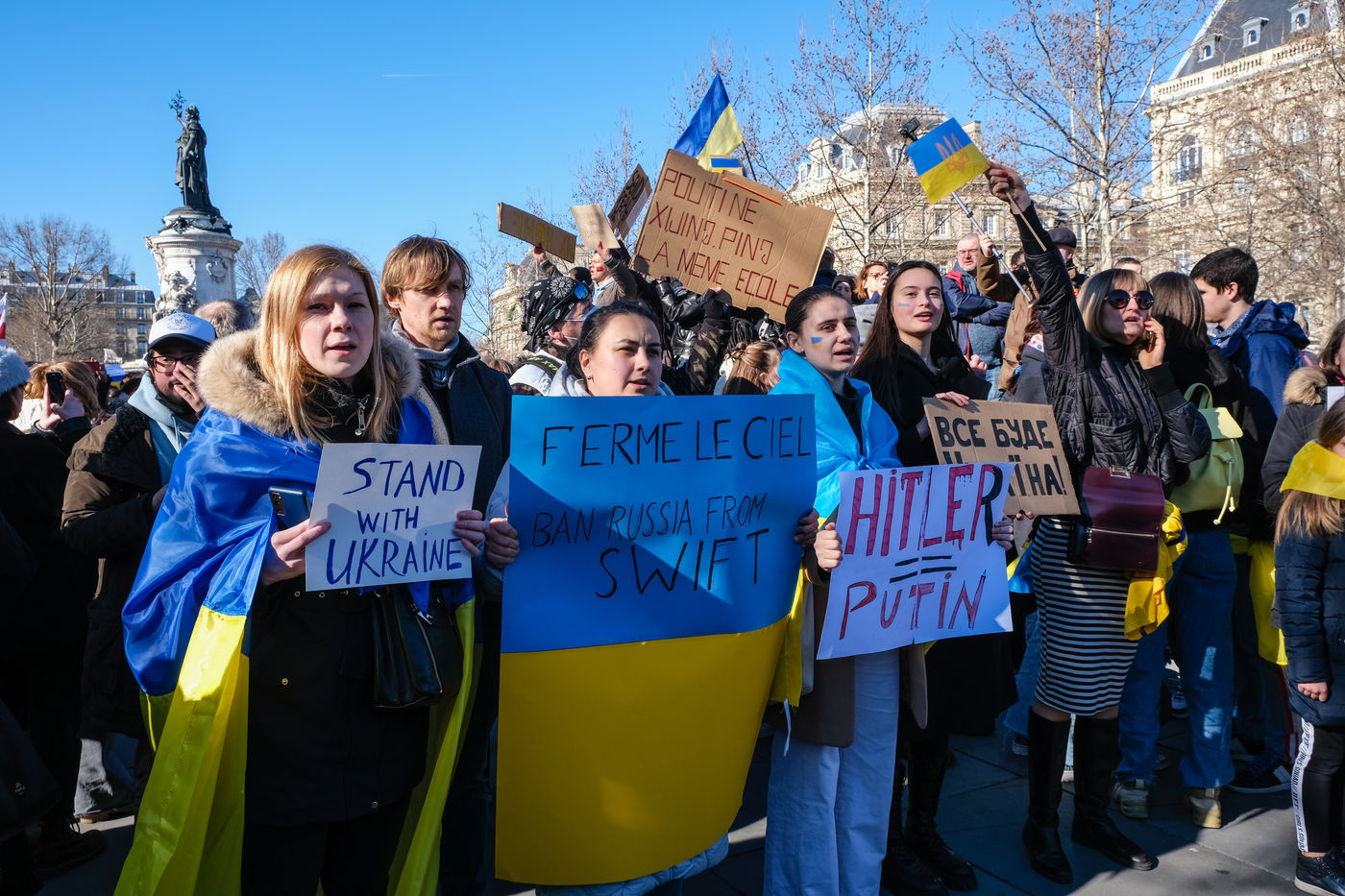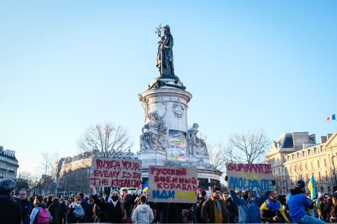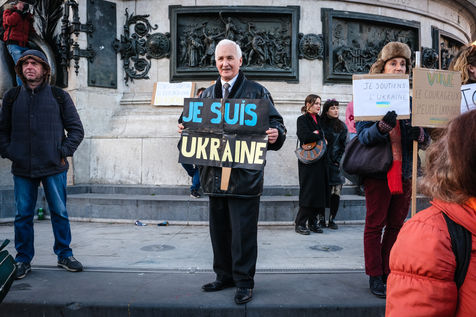 Rally in Paris at Place de la Republique in support of the Ukrainian people.