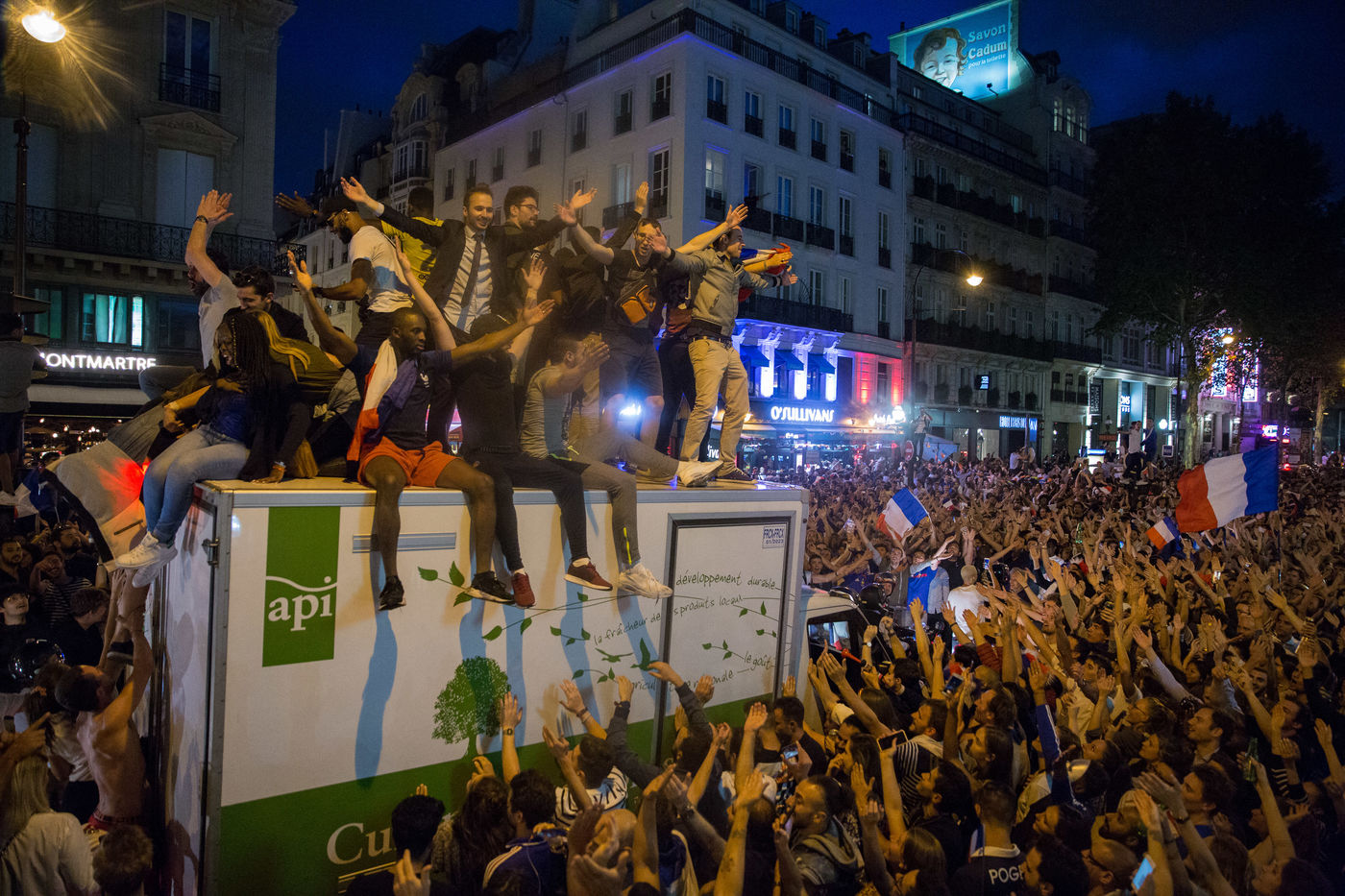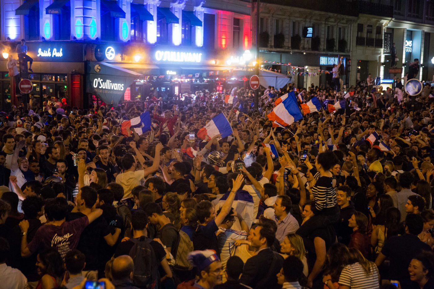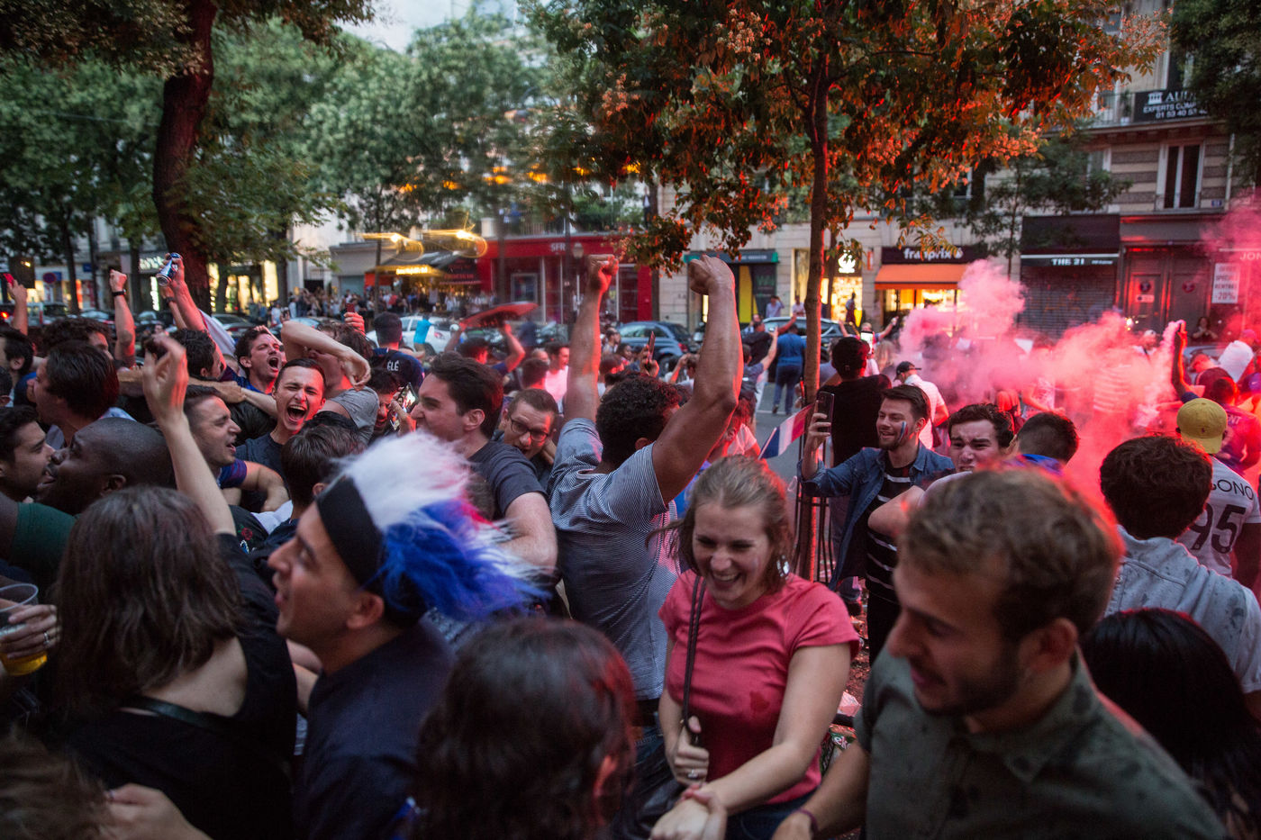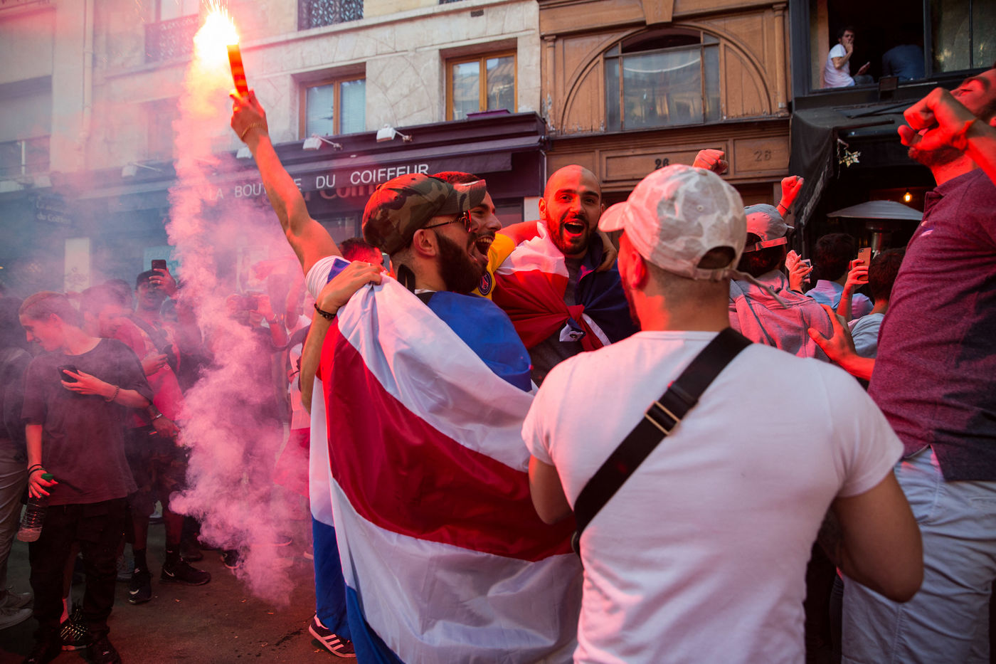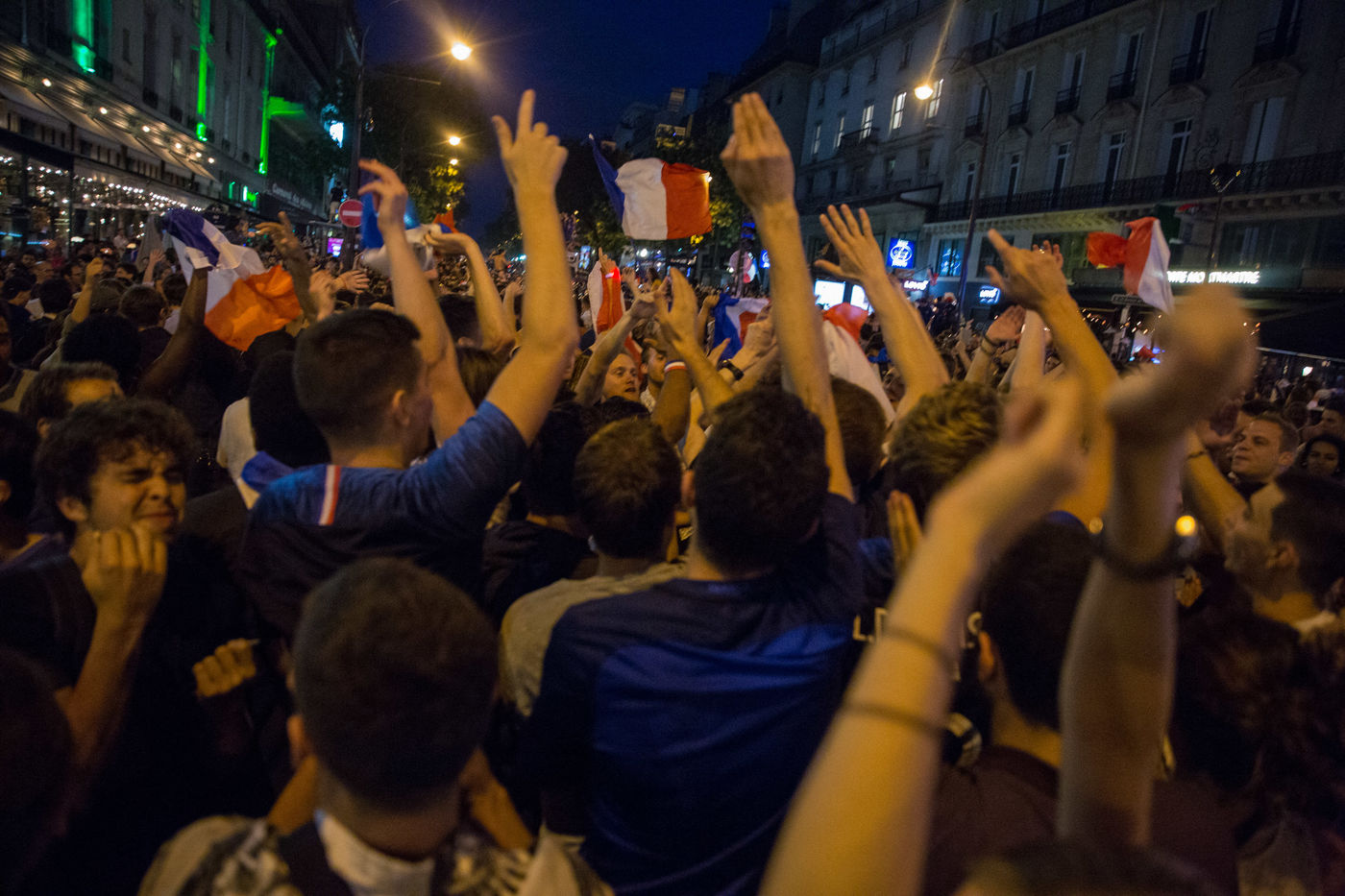 Scenes de Joie dans Paris apres la qualification pour la finale de la coupe du monde de Russie