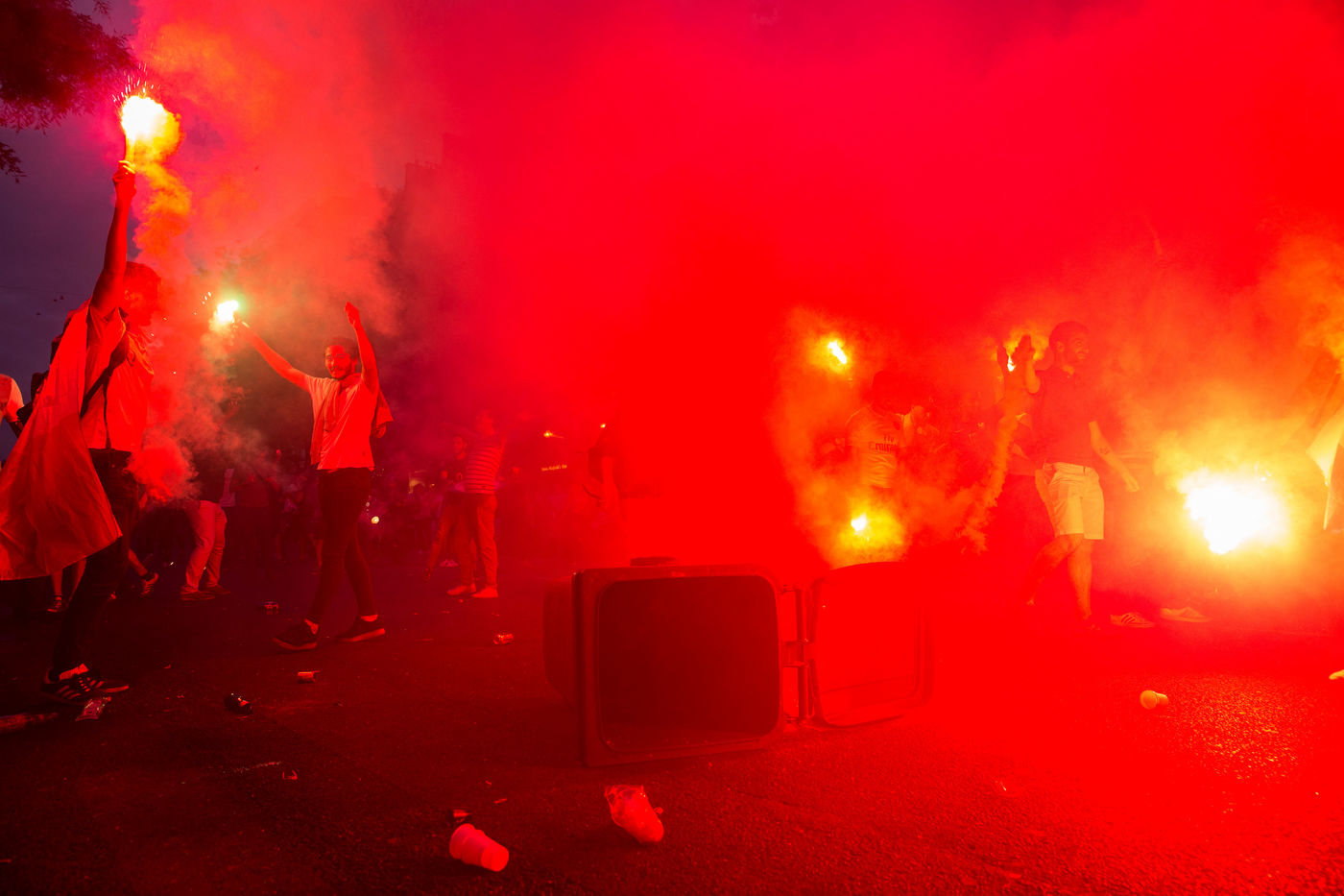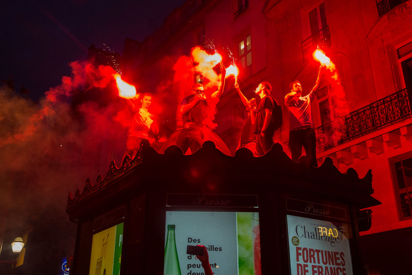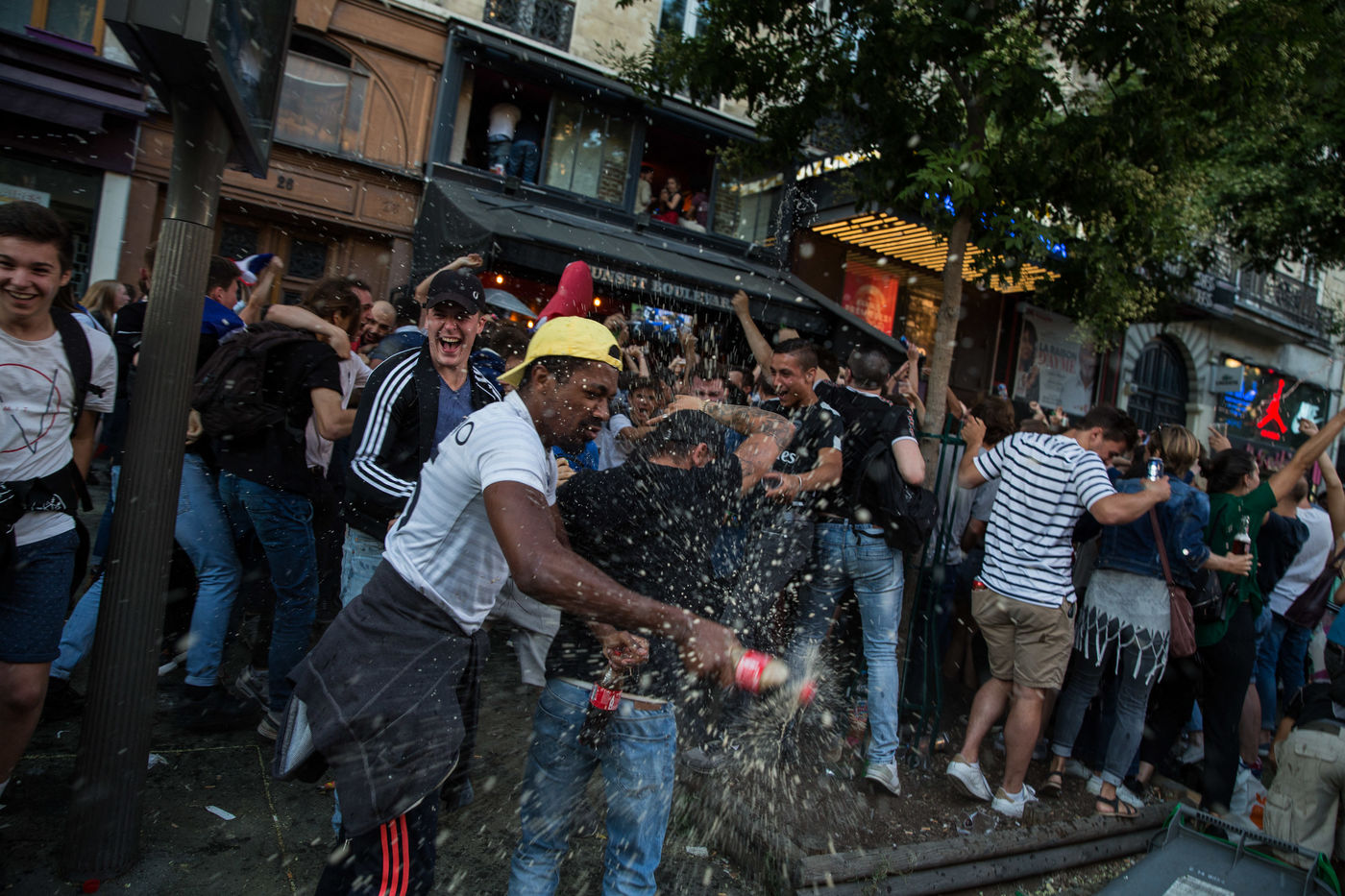 Les Francais sont descendus dans les rues de Paris le mardi 10 Juillet pour regarder le match de la demie-finale de la coupe du monde 2018 en Russie. Le match opposait La France a la Belgique. La France a gagne 1-0 avec un but de Samuel Umtiti. Des liesses de joies ont explosees partout dans la ville apres la vitoire de l'equipe de France