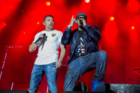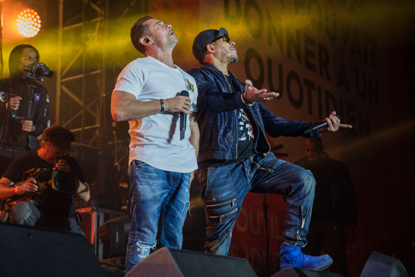 French Hip-hop music band, Supreme NTM performs a live during the first day of the Fete de l'huma, in La Courneuve, in Paris suburb, on Friday, September 14th, 2018. The group comprises rappers Joey Starr (born Didier Morville) and Kool Shen (born Bruno Lopes).