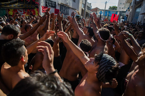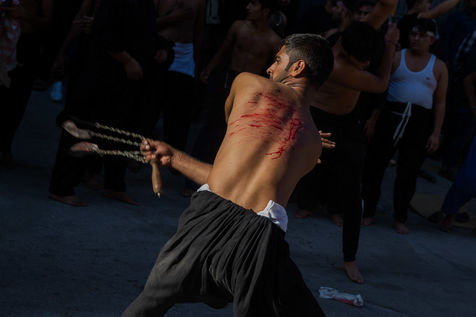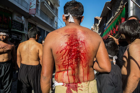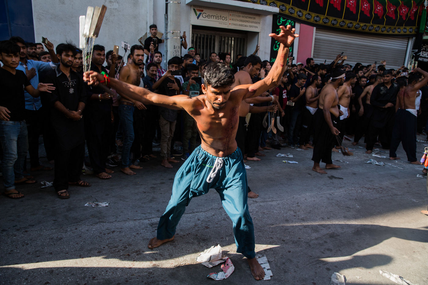 Shia Muslims community gather to celebrate the day of Ashura, in Piraeus District near Athens, Greece on Thursday, September 20th 2018. The day of Ashura is celebrated by Shia Muslims as a day of mourning for the martyrdom of Husayn ibn Ali, grandson of the Prophet Muhammad, who was killed by armies of the Yazid near Karbala in 680 AD. Athens is the only European capital to authorized this celebration. There are processions when people beat their chests in signal of grief and sorrow. Shia men flagellating themselves to commemorate the martyrdom of Hussein, a grandson of the Prophet Mohammed.