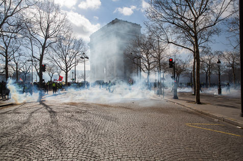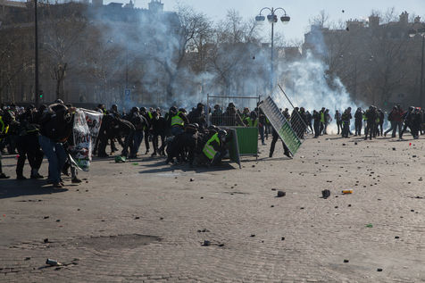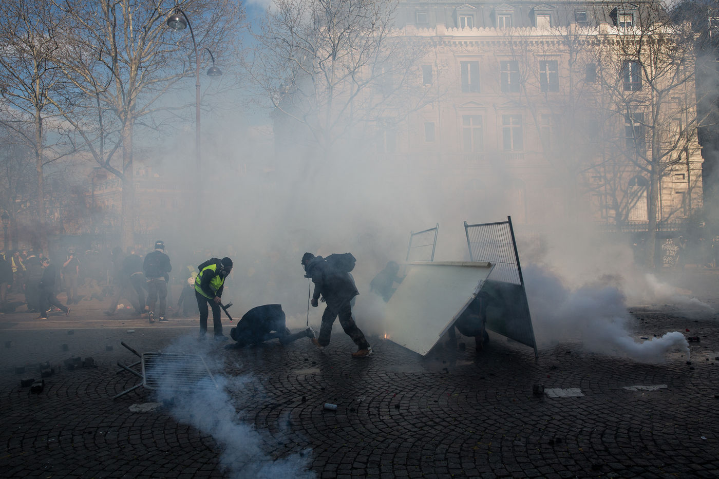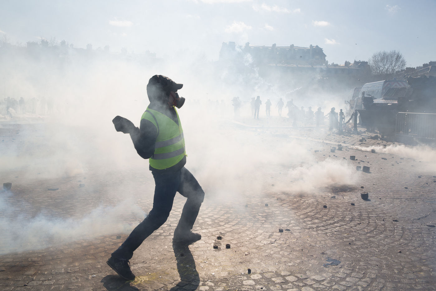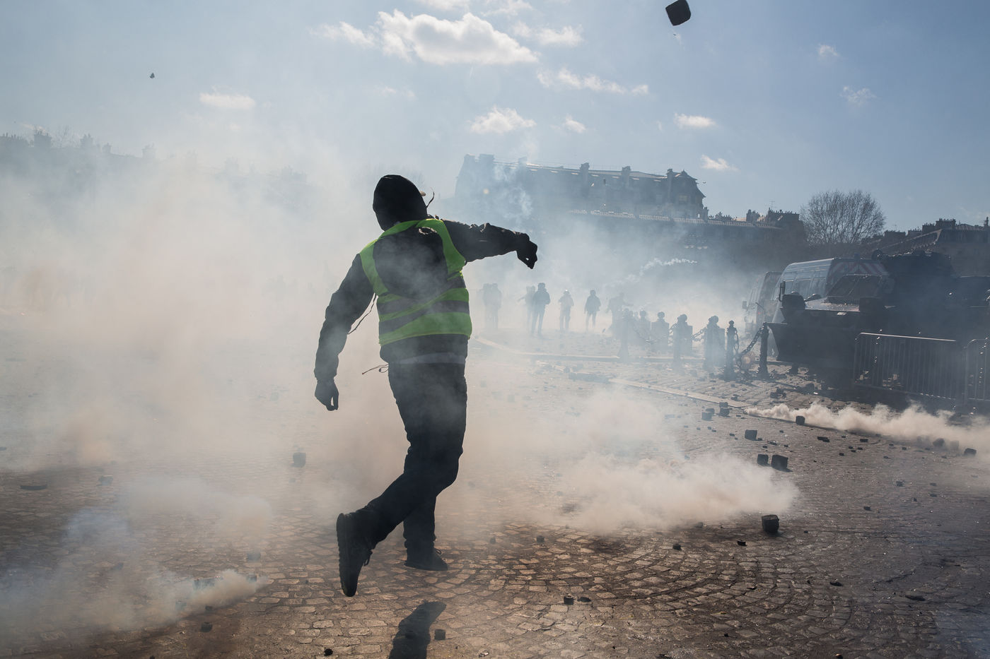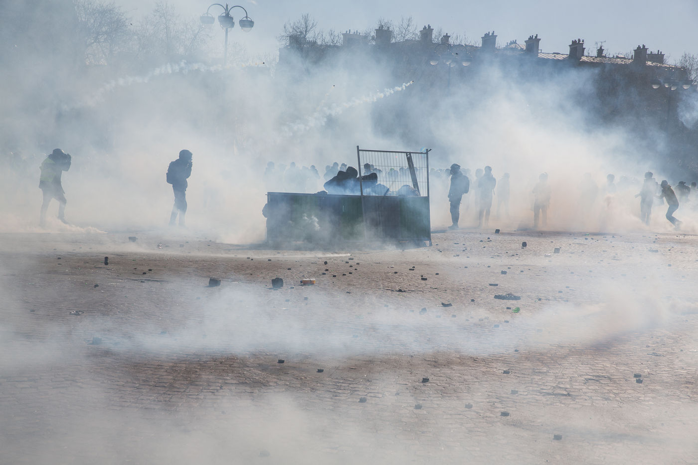 Violent clashes between demonstrator and polcie force during the round 18 of Yellow vests demonstration on 16th March 2019 on Champs Elysees avenue in Paris.