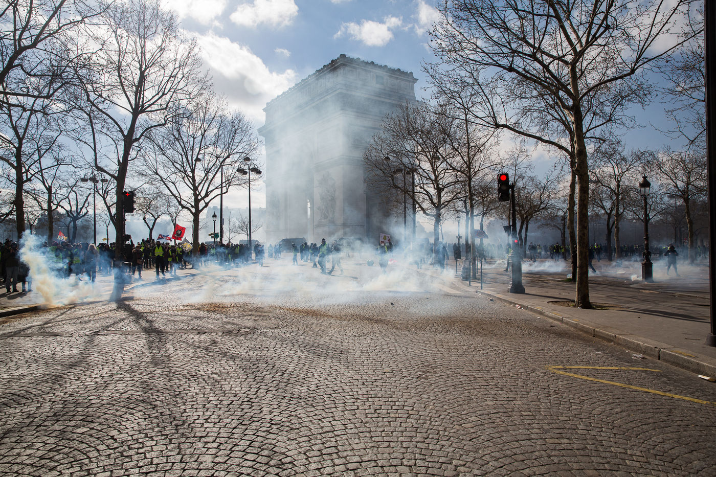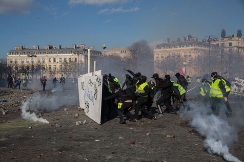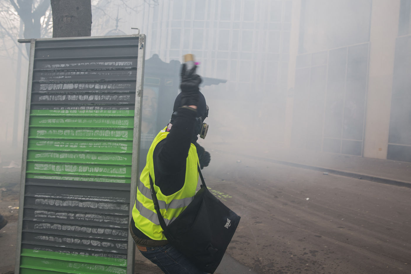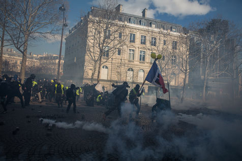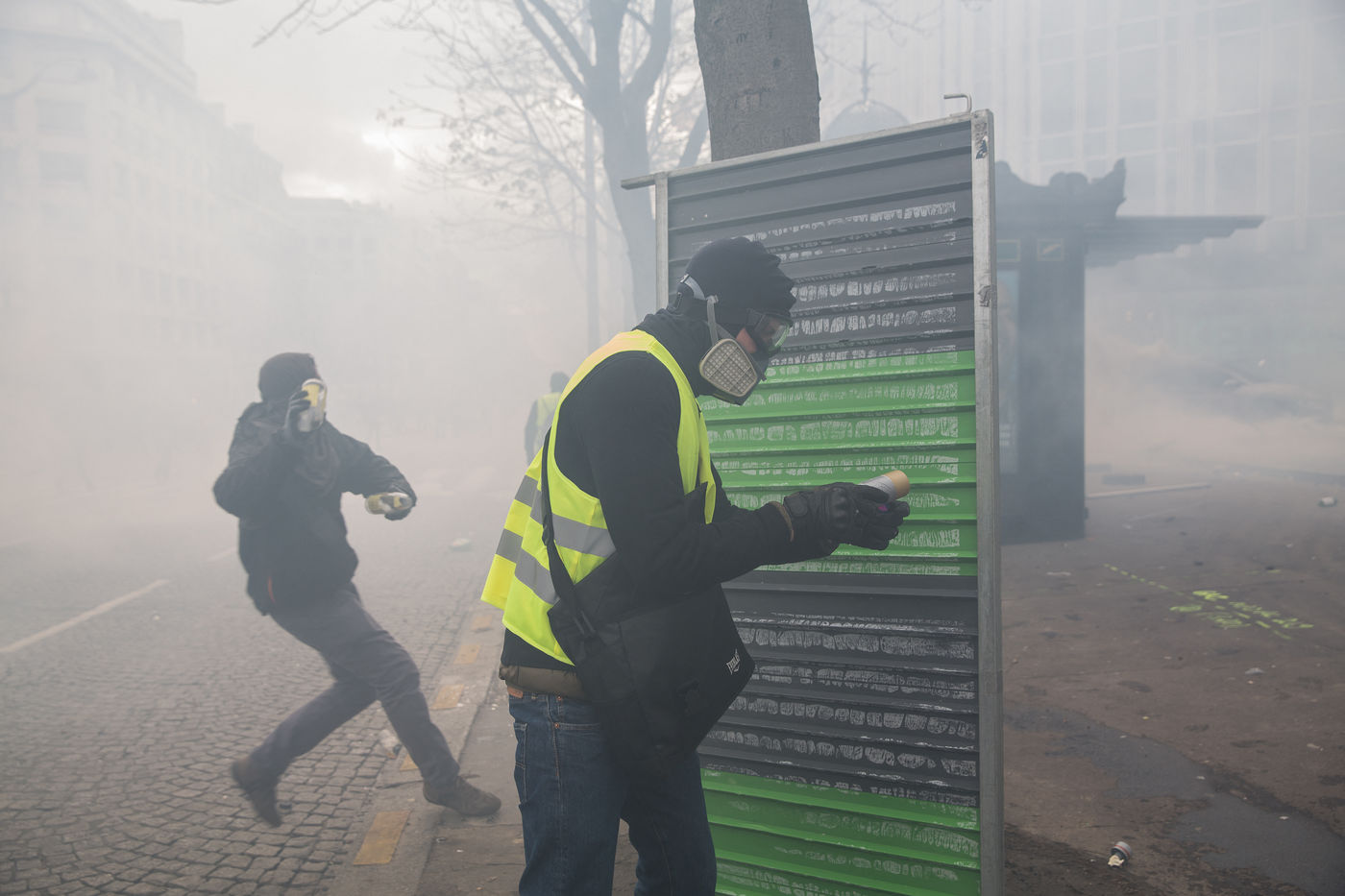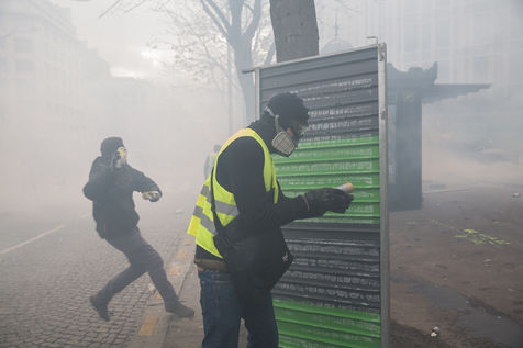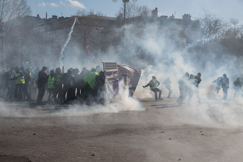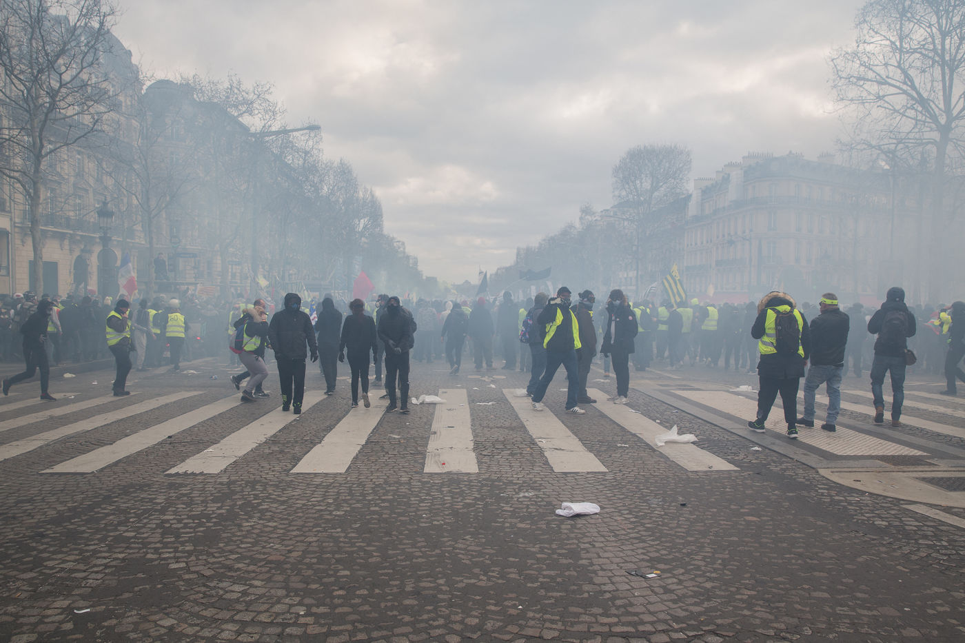 Violent clashes between demonstrator and polcie force during the round 18 of Yellow vests demonstration on 16th March 2019 on Champs Elysees avenue in Paris.