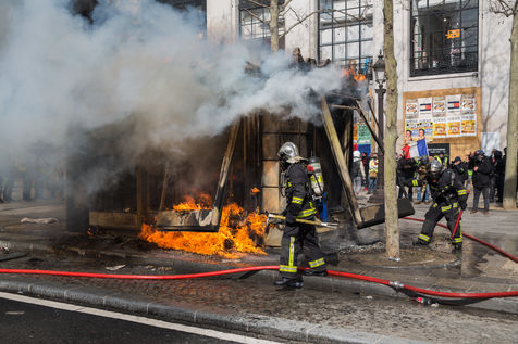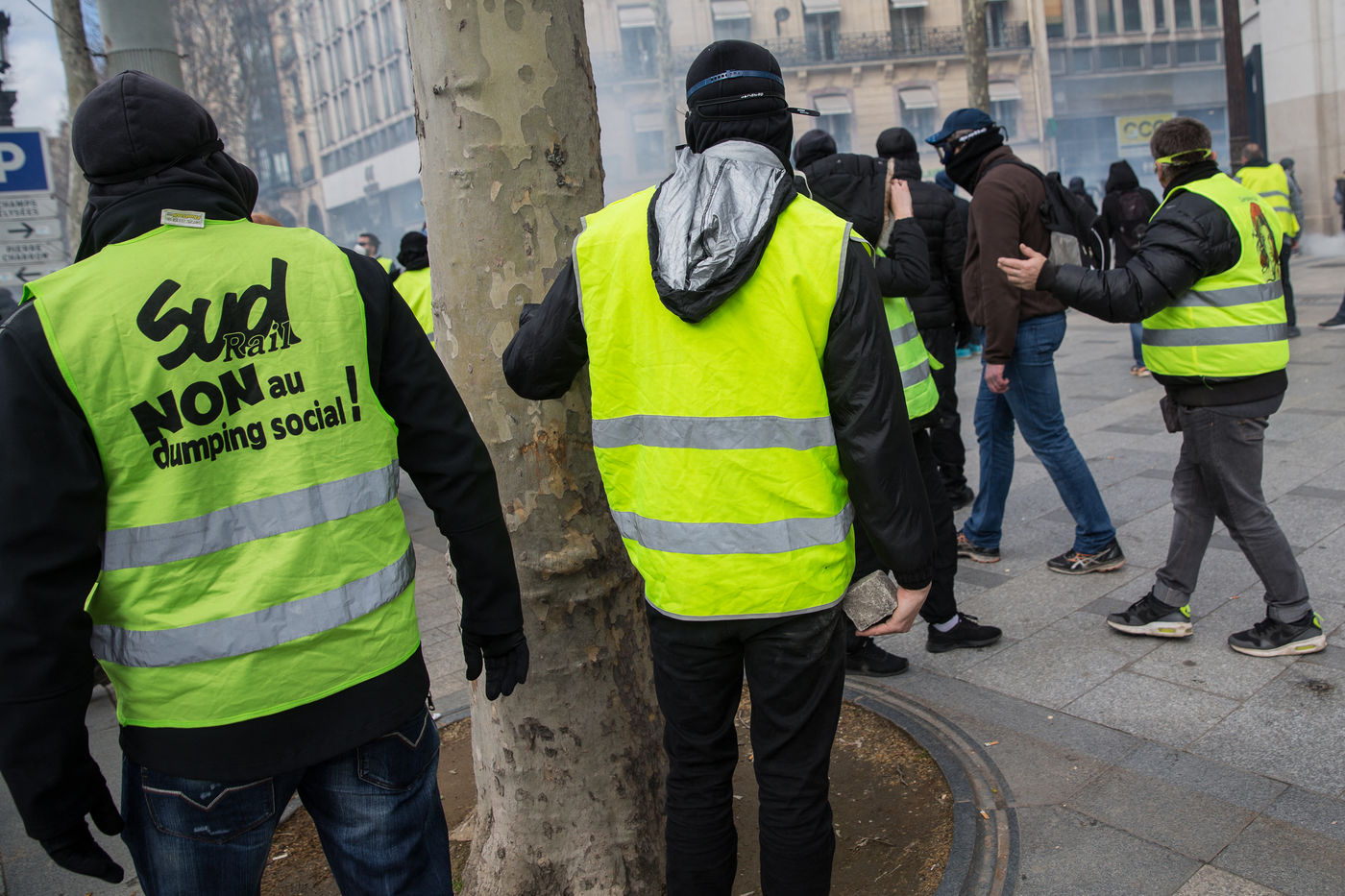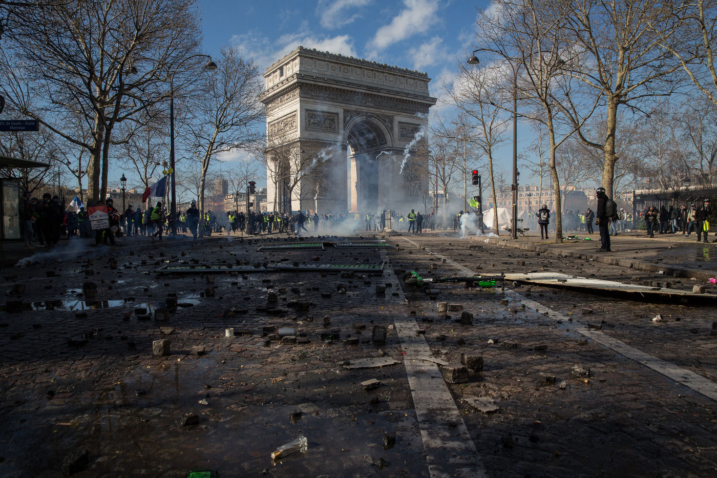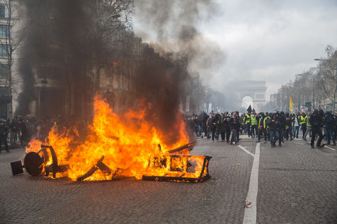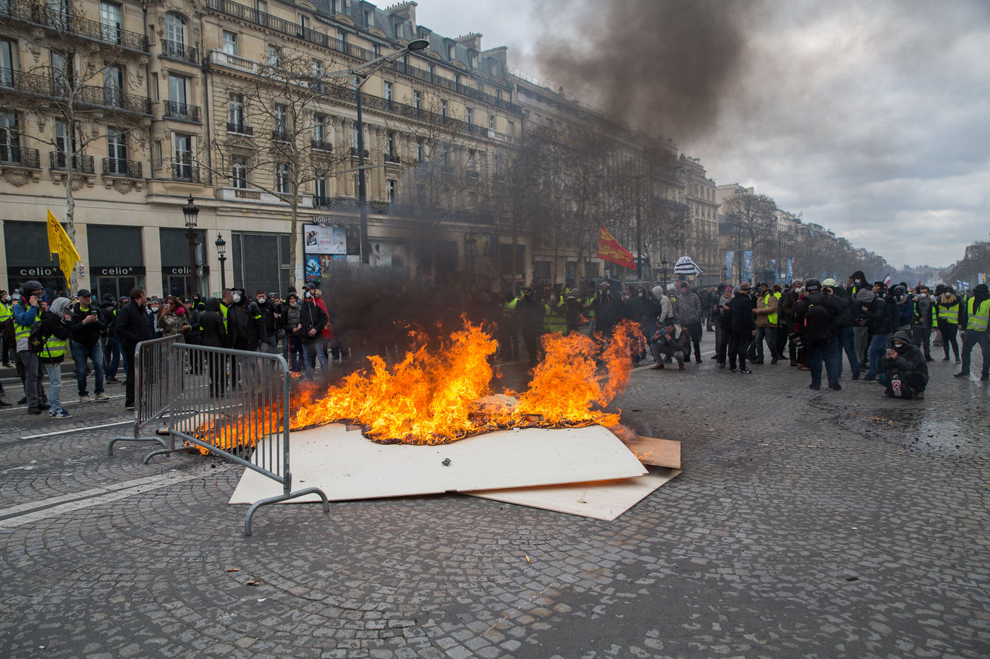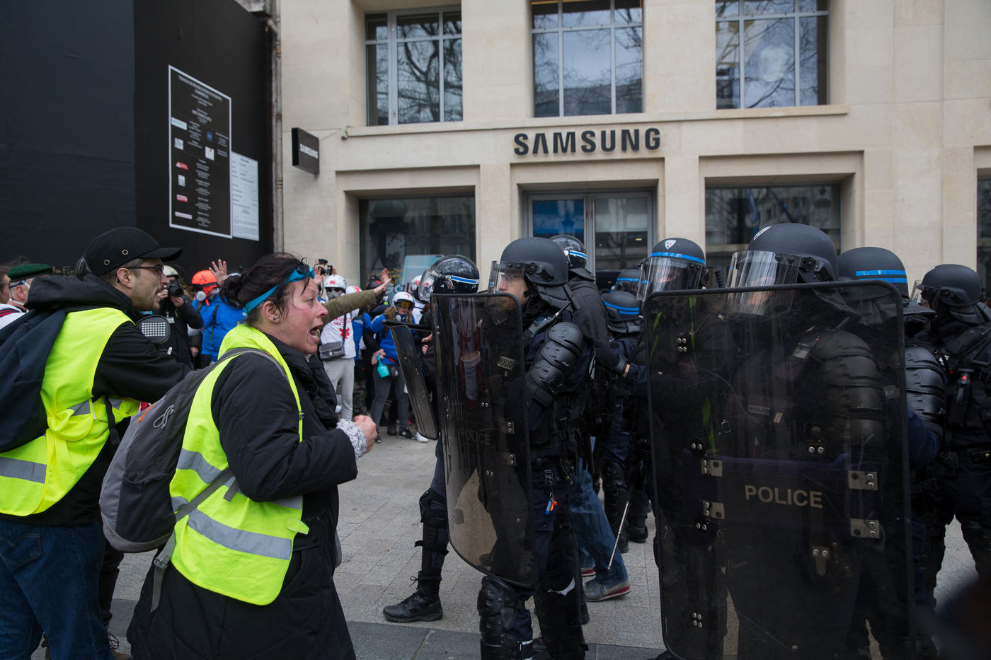Violent clashes between demonstrator and polcie force during the round 18 of Yellow vests demonstration on 16th March 2019 on Champs Elysees avenue in Paris.