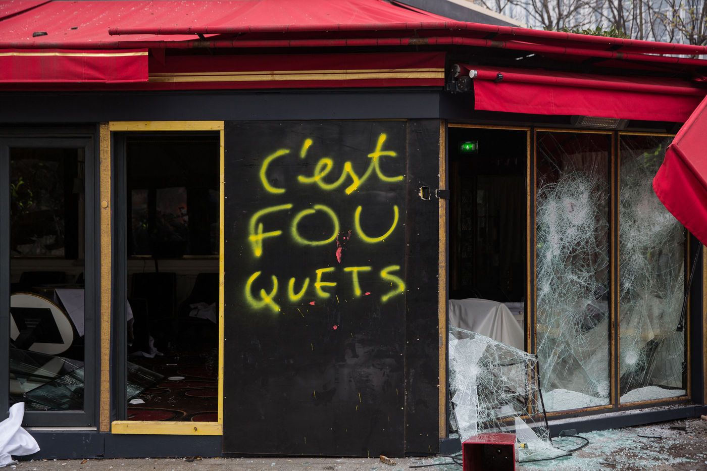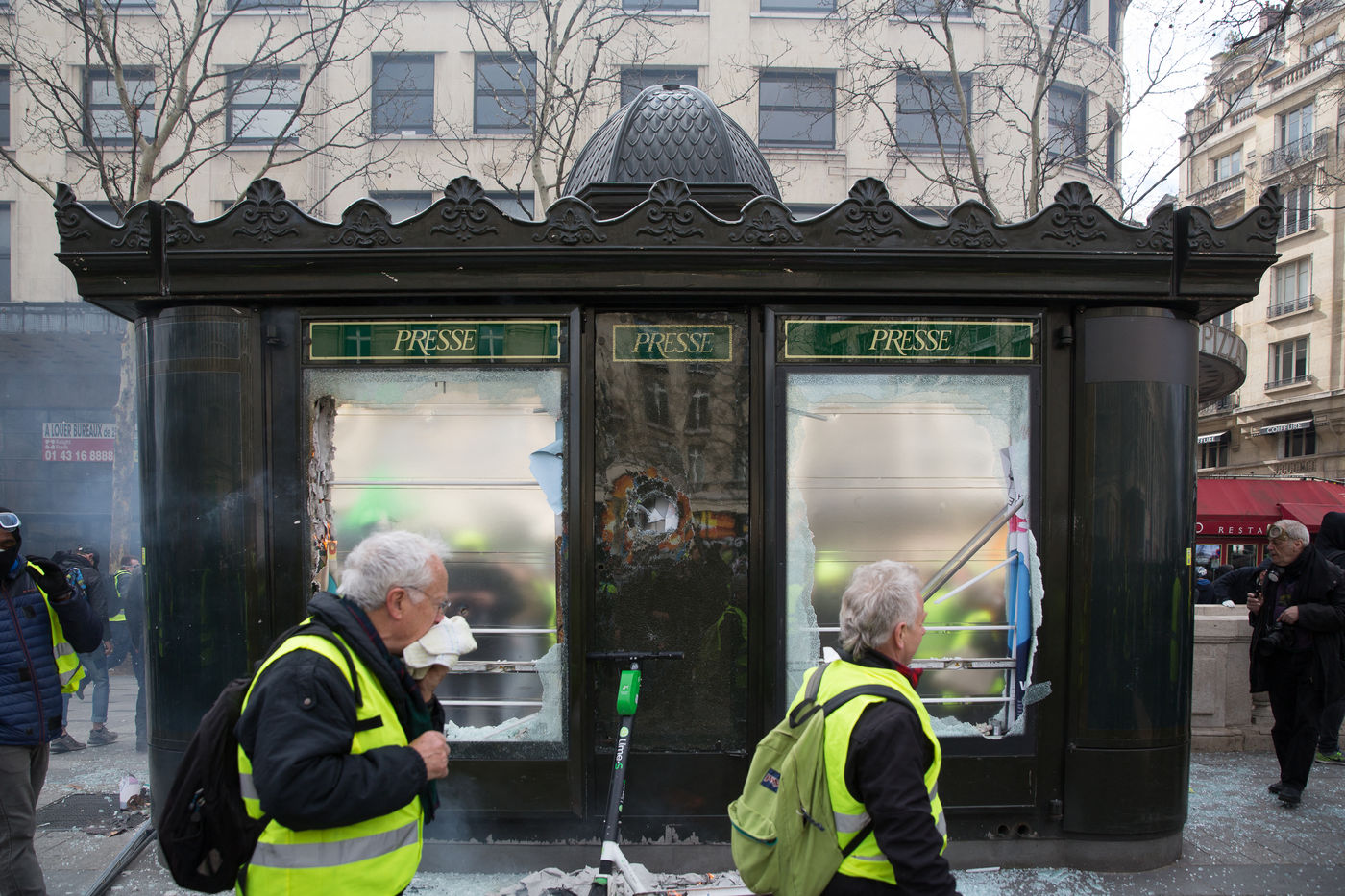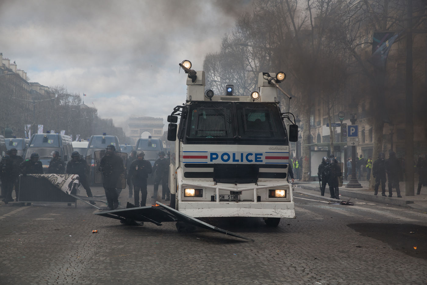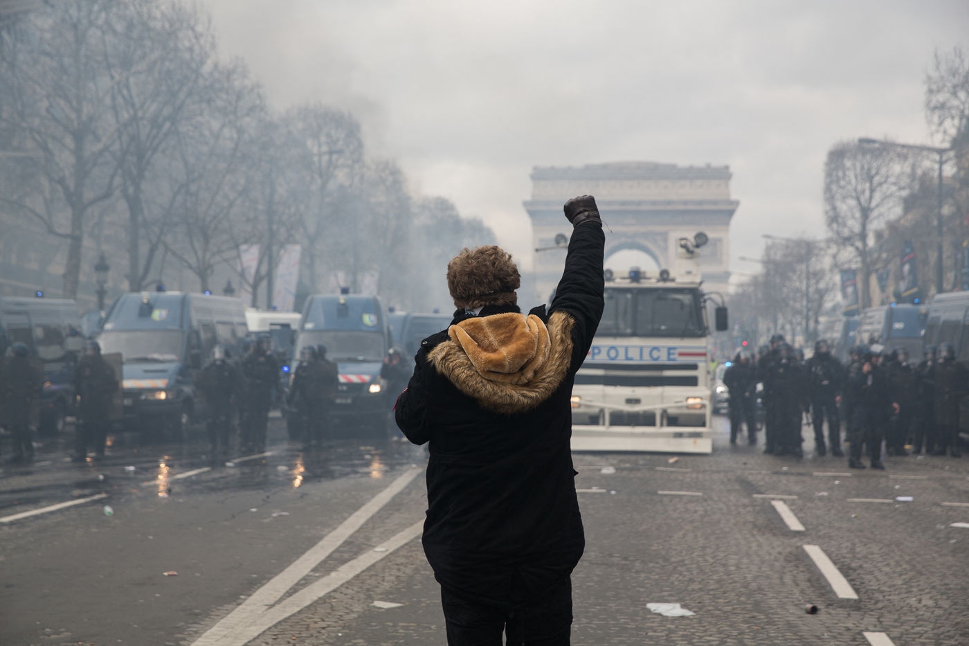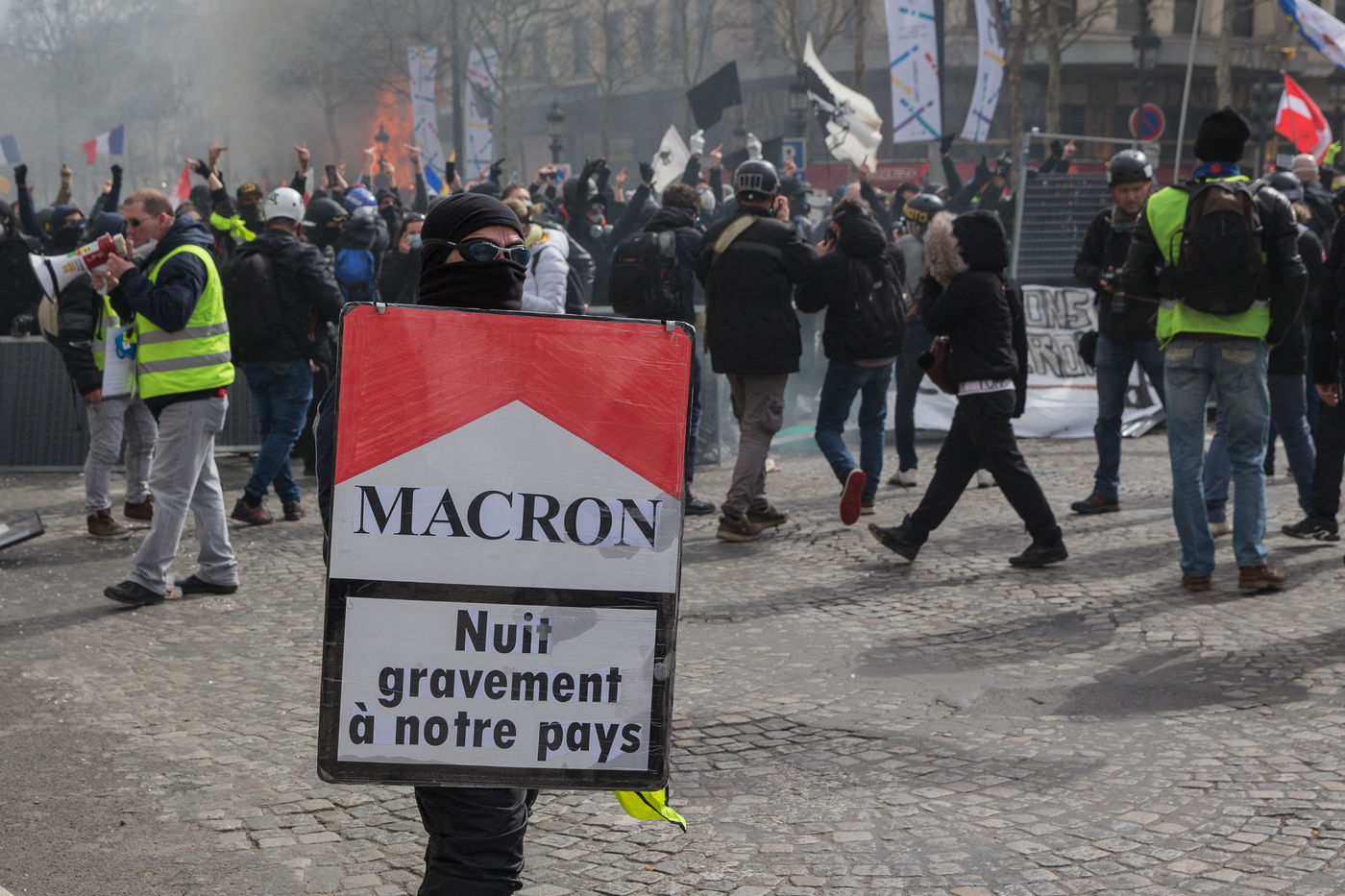 Violent clashes between demonstrator and polcie force during the round 18 of Yellow vests demonstration on 16th March 2019 on Champs Elysees avenue in Paris.