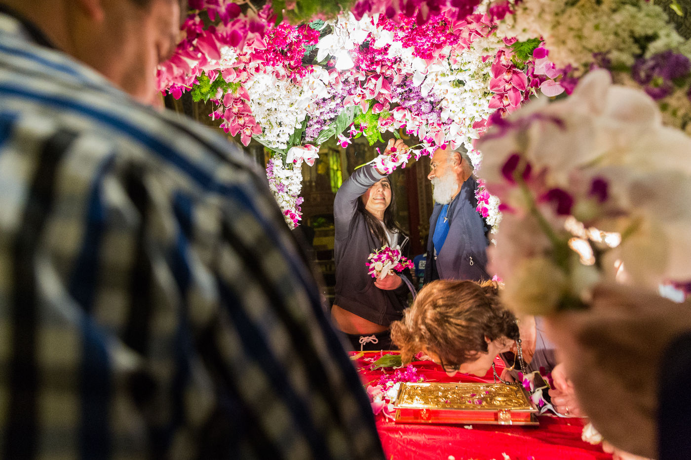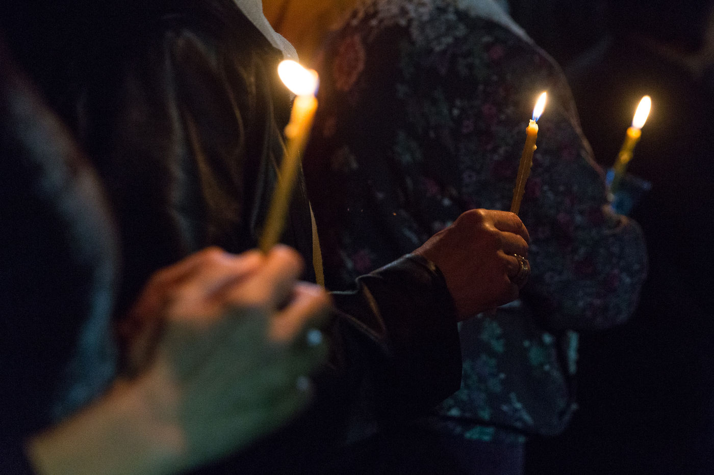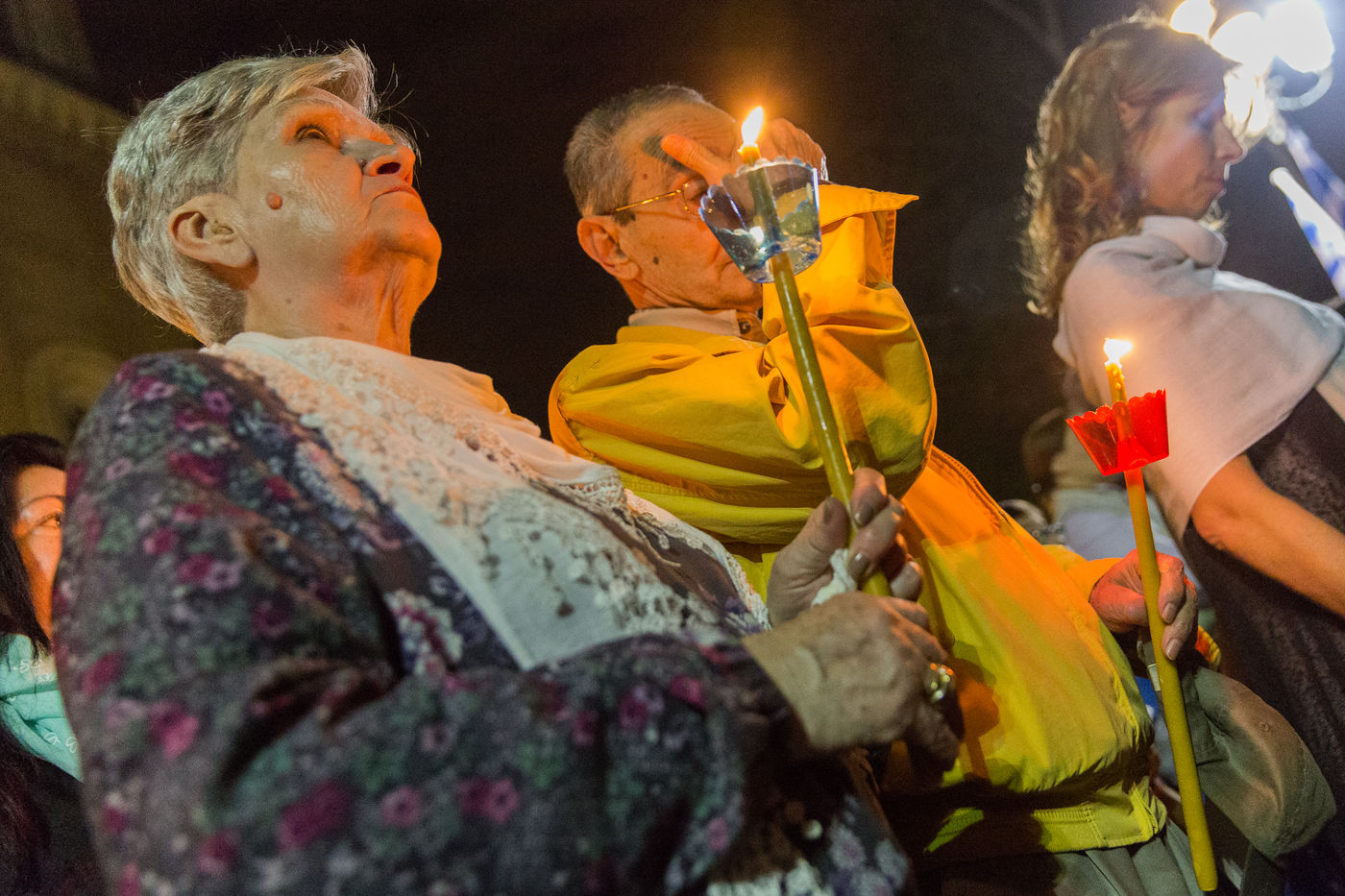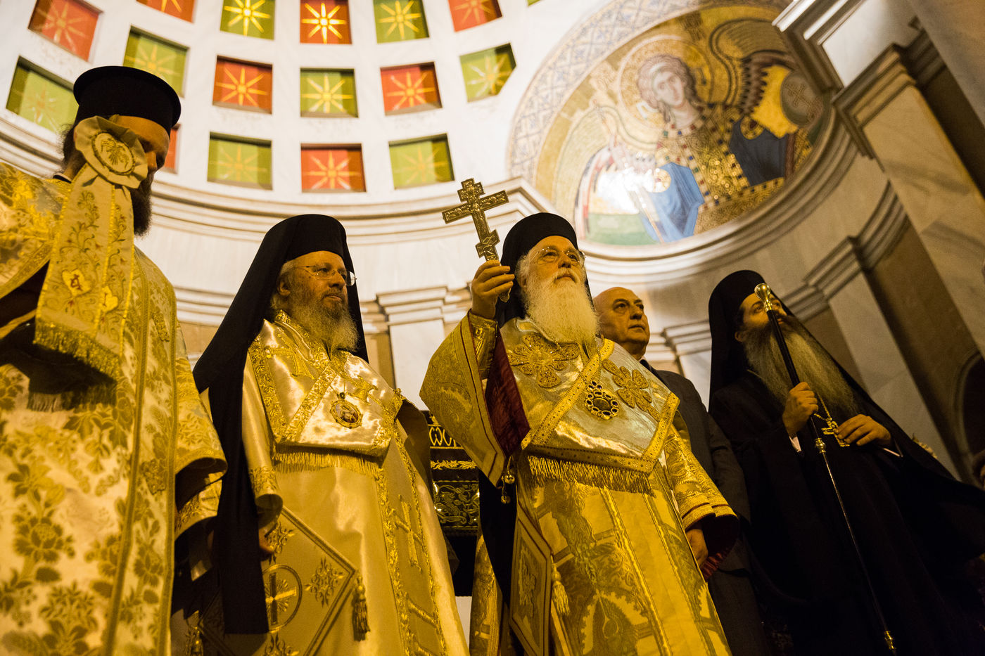 Priests and Orthodox Christians participate in the procession of the Epitaph in center of Athens, on Good Friday.