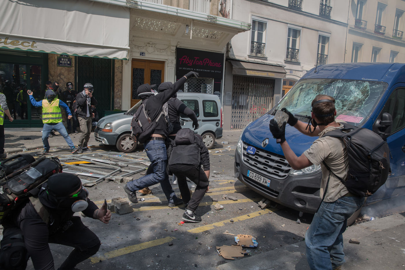 uprest during Labour Day in Paris
