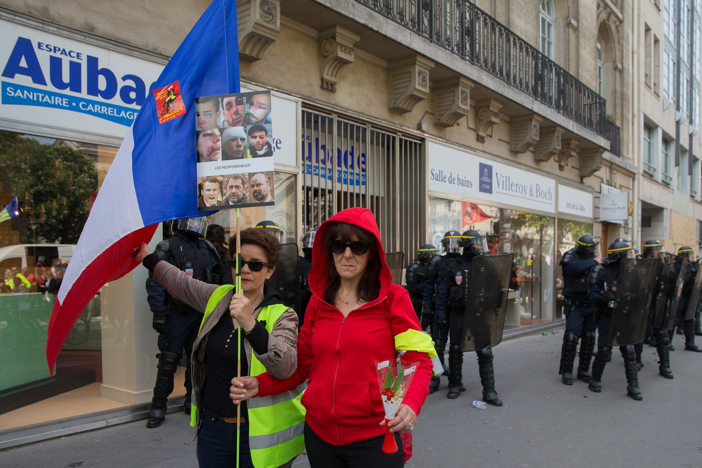 Manifestation pour la fete du travail a ete marquee par de violences et combats entre forces de l'ordre et manifestants dans les rues de Paris. Des nombreuses personnes ont ete blessees lors des emeutes ce mercredi 1er Mai 2019