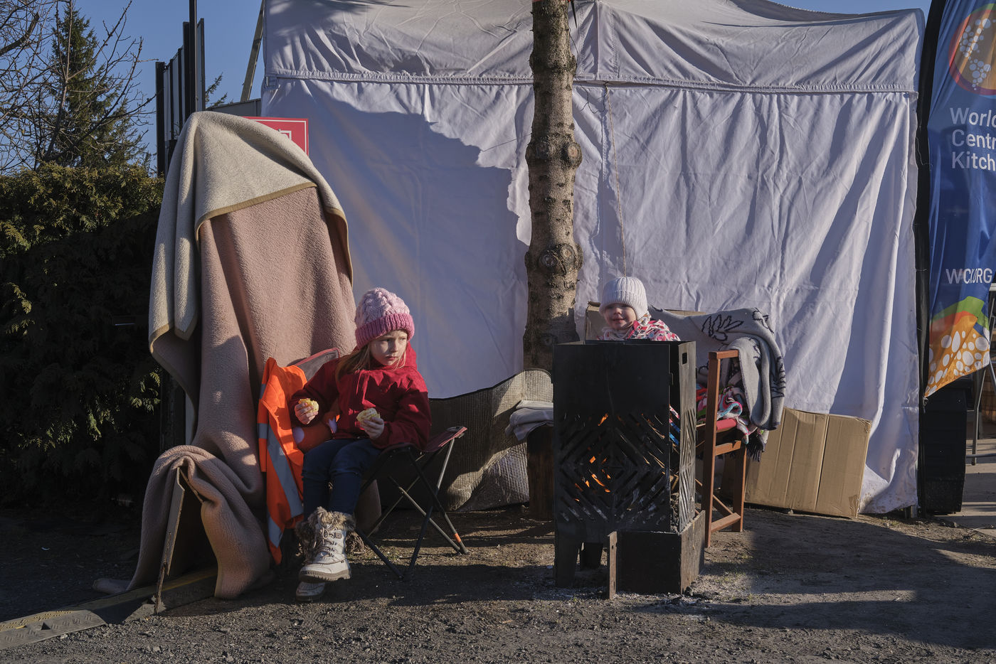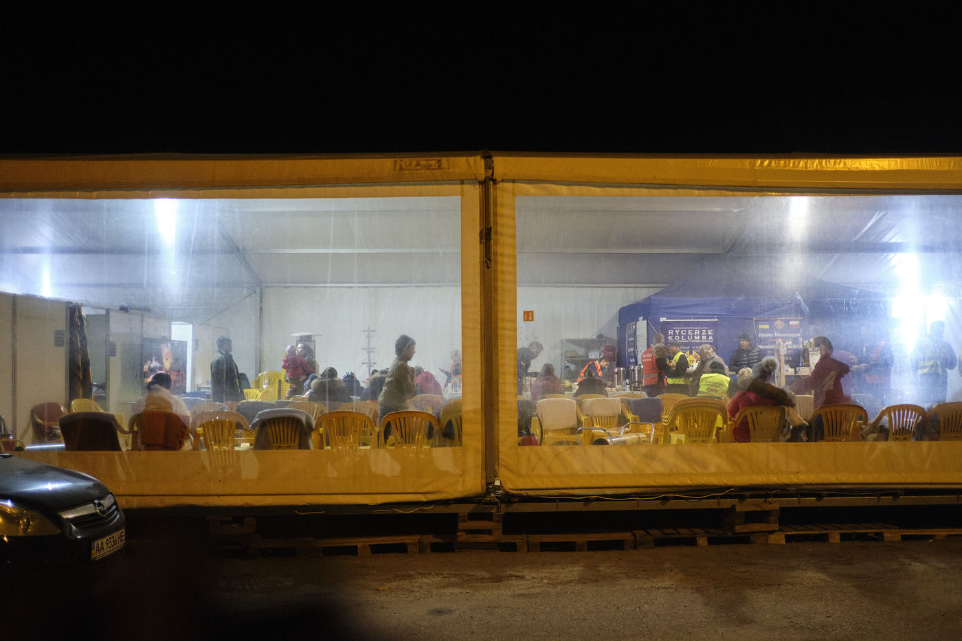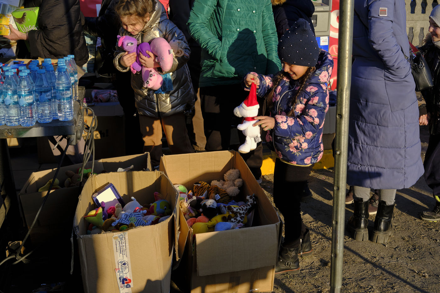 Depuis le début de l'invasion de l'Ukraine par les forces Russes, des milliers de réfugiés Ukrainiens, principalement des femmes accompagnées de leurs enfants et des grands-parents, fuient leur pays pour trouver une aide internationale une fois la frontière traversée. L'armée et la police polonaise mais aussi de nombreuses associations accueillent les familles en leur proposant de la nourriture, des vêtements chauds, une SIM carte, des boissons, des produits de première nécessité, un lieu pour se reposer, se réchauffer, retrouver un semblant d'espoir.