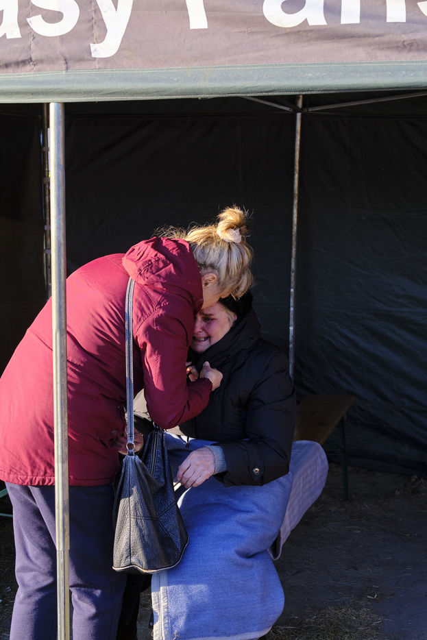 Since the beginning of the invasion of Ukraine by Russian forces, thousands of Ukrainian refugees, mainly women accompanied by their children and grandparents, have been fleeing their country in search of international help once they have crossed the border. The Polish army and police, as well as numerous associations, welcome the families by offering them food, warm clothes, a SIM card, drinks, basic necessities, a place to rest, to warm up, to find a semblance of hope.