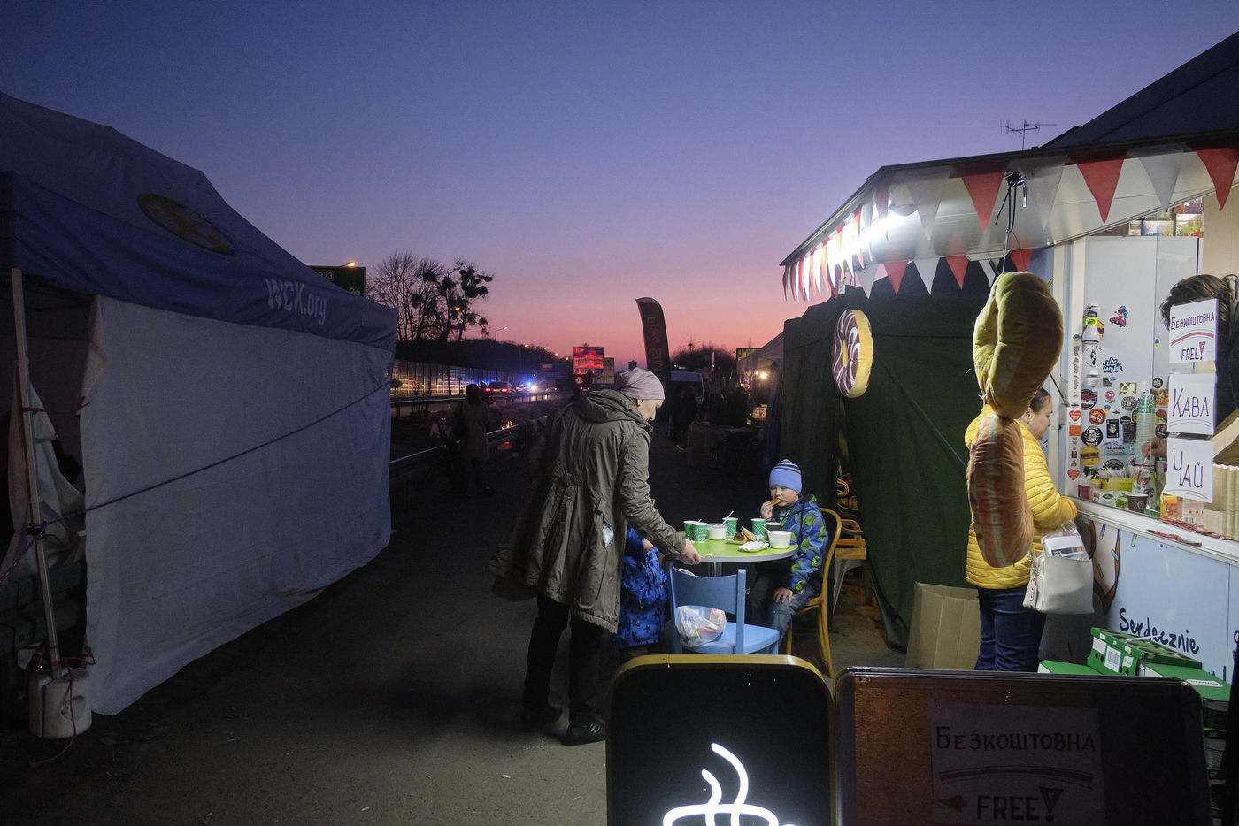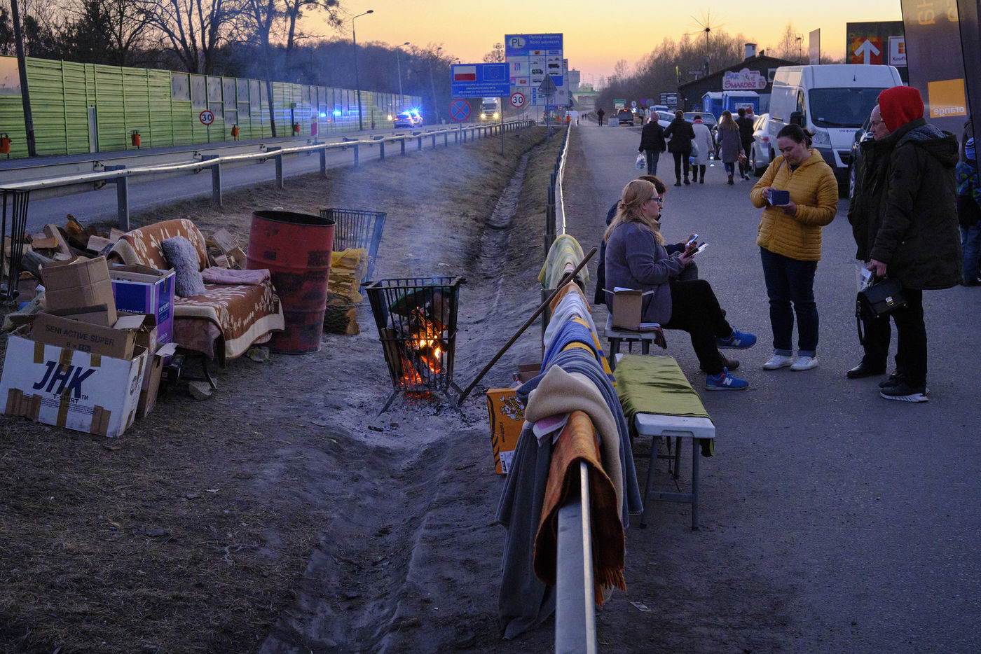 L'armée et la police polonaise mais aussi de nombreuses associations locales et internationales accueillent les familles en leur proposant de la nourriture, des vêtements chauds, une SIM carte, des boissons, des produits de première nécessité, un endroit pour se reposer, se réchauffer, retrouver un semblant d'espoir.