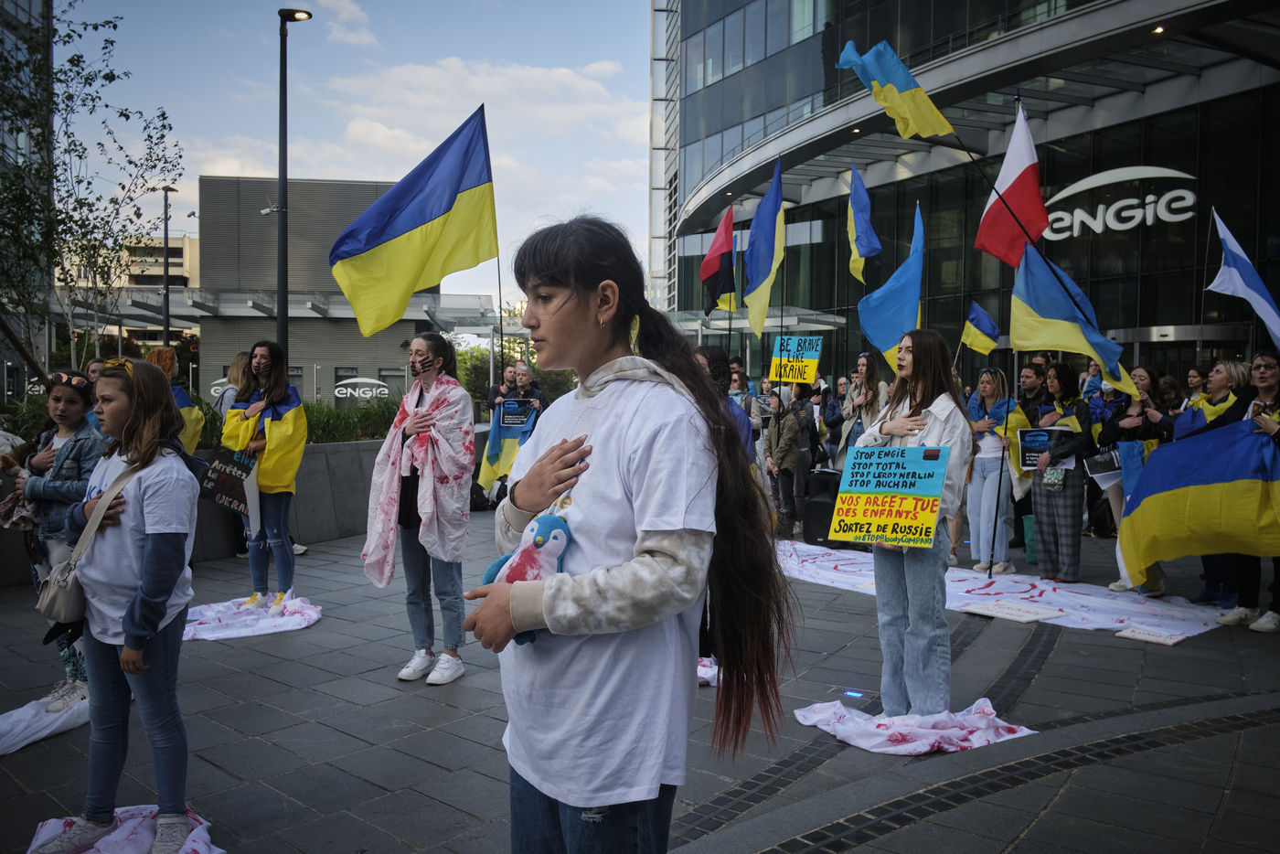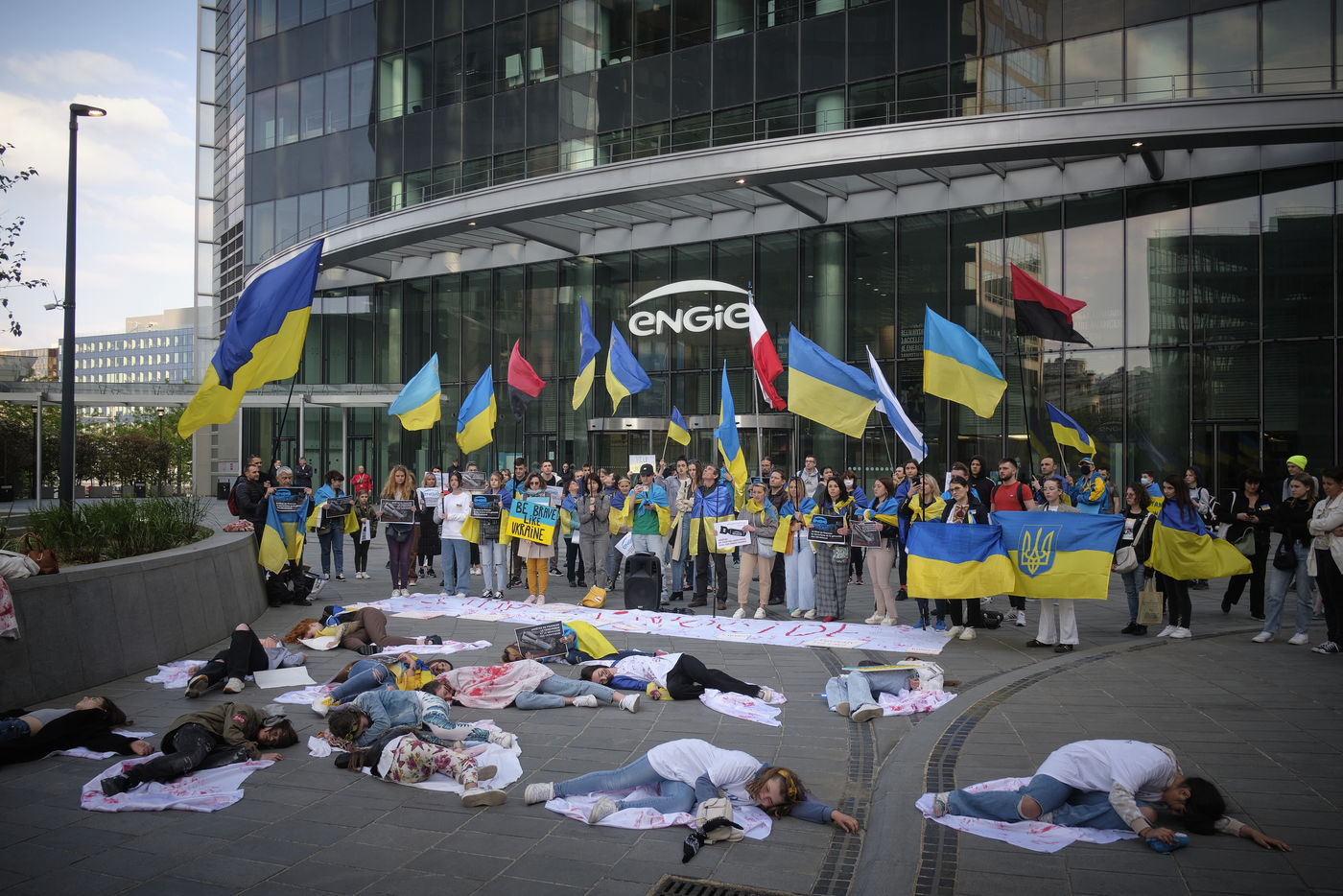 Chaque semaine, de nombreux partisans manifestent à Paris afin de soutenir le peuple ukrainien qui subit une invasion des forces russes. Aujourd?hui, ils dénoncent l?importation de gaz acheter par Engie, , troisième plus grand groupe mondial dans le secteur de l'énergie, hors pétrole. Une coupure totale des importations de gaz russe, selon Catherine MacGregor, directrice générale du groupe industriel français, résulterait en un « choc de prix sans précédent ».