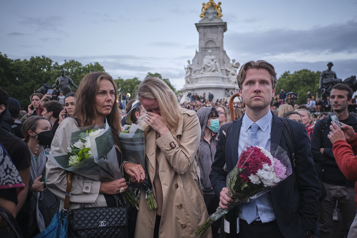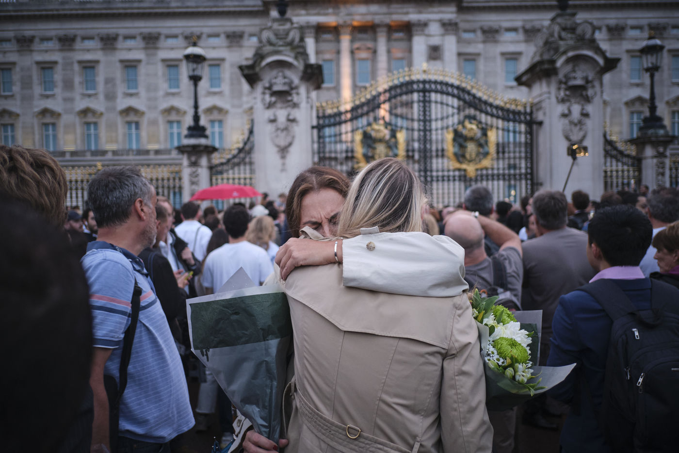 A l age de 96 ans, apres 70 ans de regne, le plus ancien monarque du Royaume-Uni, sa majeste Elizabeth II, est decedee au chateau de Balmoral en Ecosse. En debut de journee, apres un communique du palais de Buckingham sur l etat de sante fragile de la reine, l inquietude grandit dans les medias nationaux et internationaux. Simultanement, malgre la pluie, les gens commencerent a se rassembler devant le palais de Buckingham. Finalement, un communique de la famille royale annonca le deces de la reine.