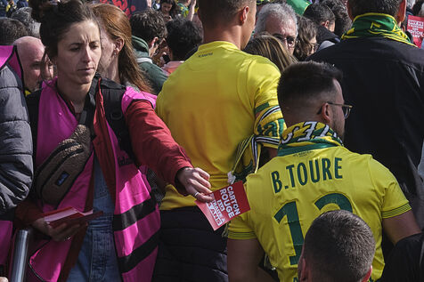 On the occasion of the French Cup final, the trade unions mobilised to show their dissatisfaction with Emmanuel Macron's government and its reform against retirement at the age of 64. They positioned themselves around the Stade France to hand out red cards and whistles to the Nantes and Toulouse fans.