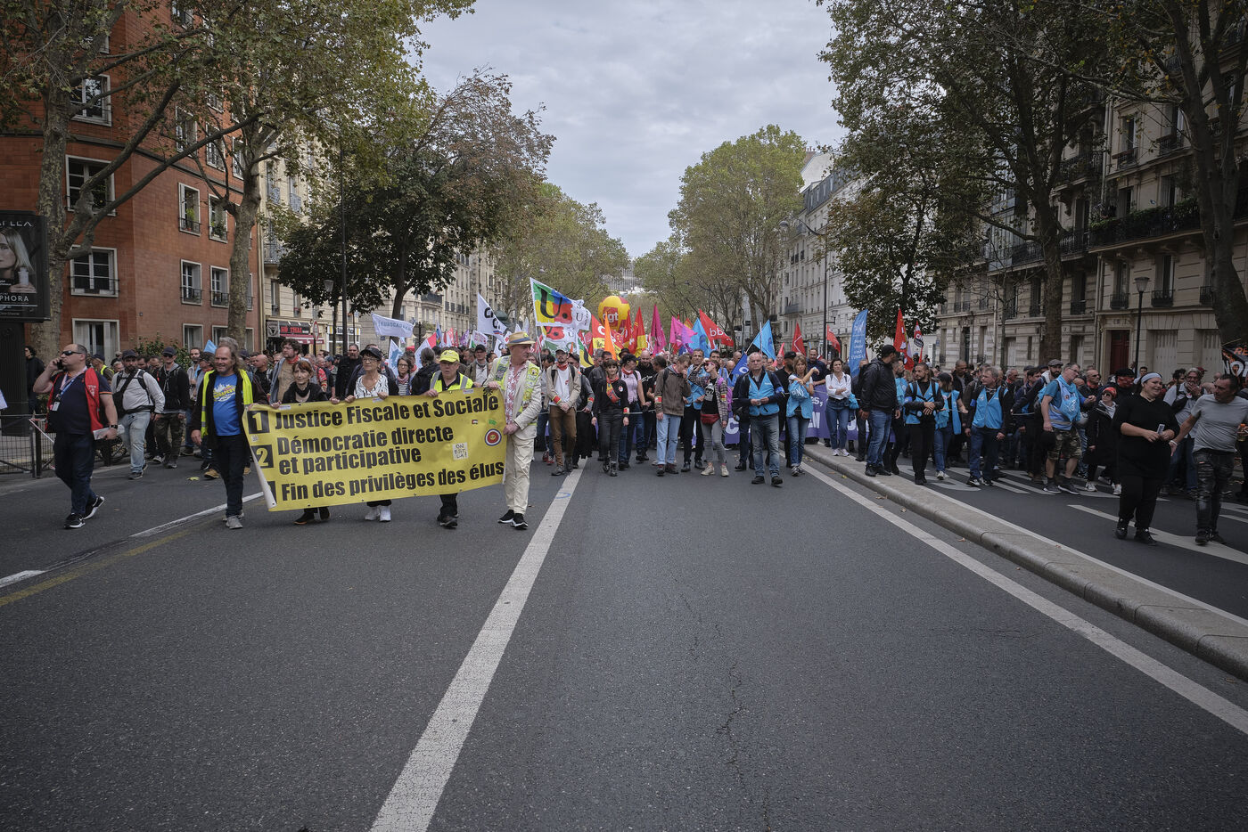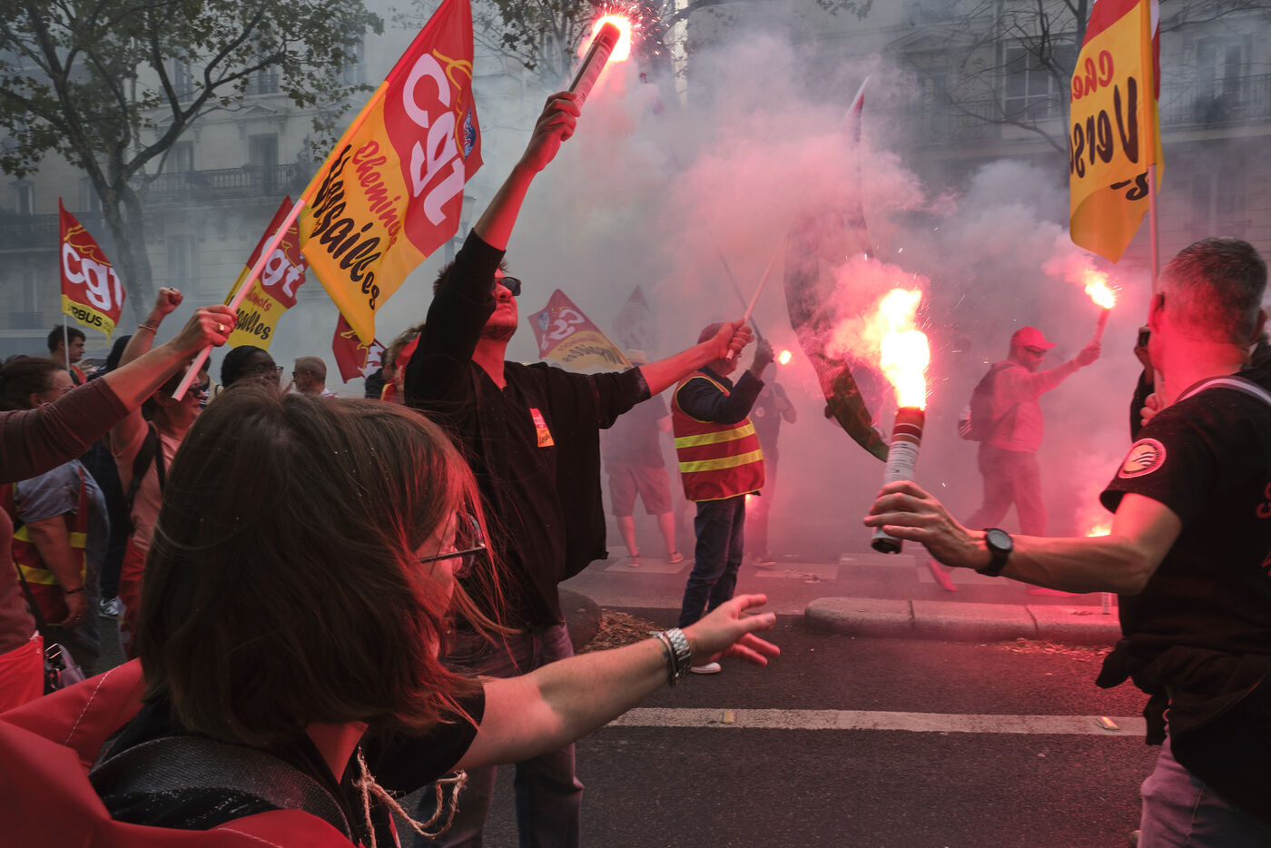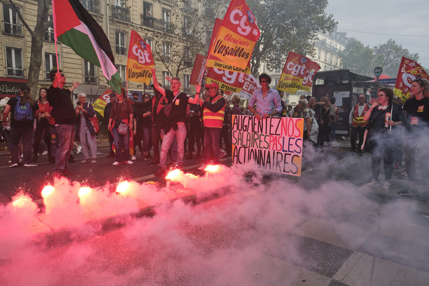 20 000 manifestants étaient présents dans les rues de Paris dans le cadre de la journée intersyndicale contre l'austérité du gouvernement et pour demander des hausses de salaires et des conditions de travail meilleures.