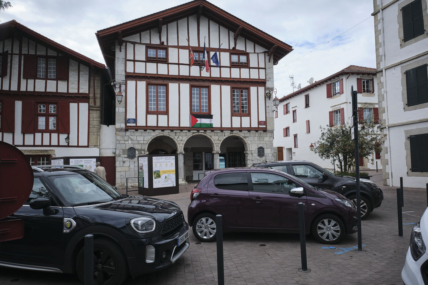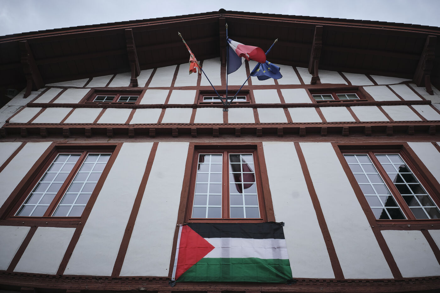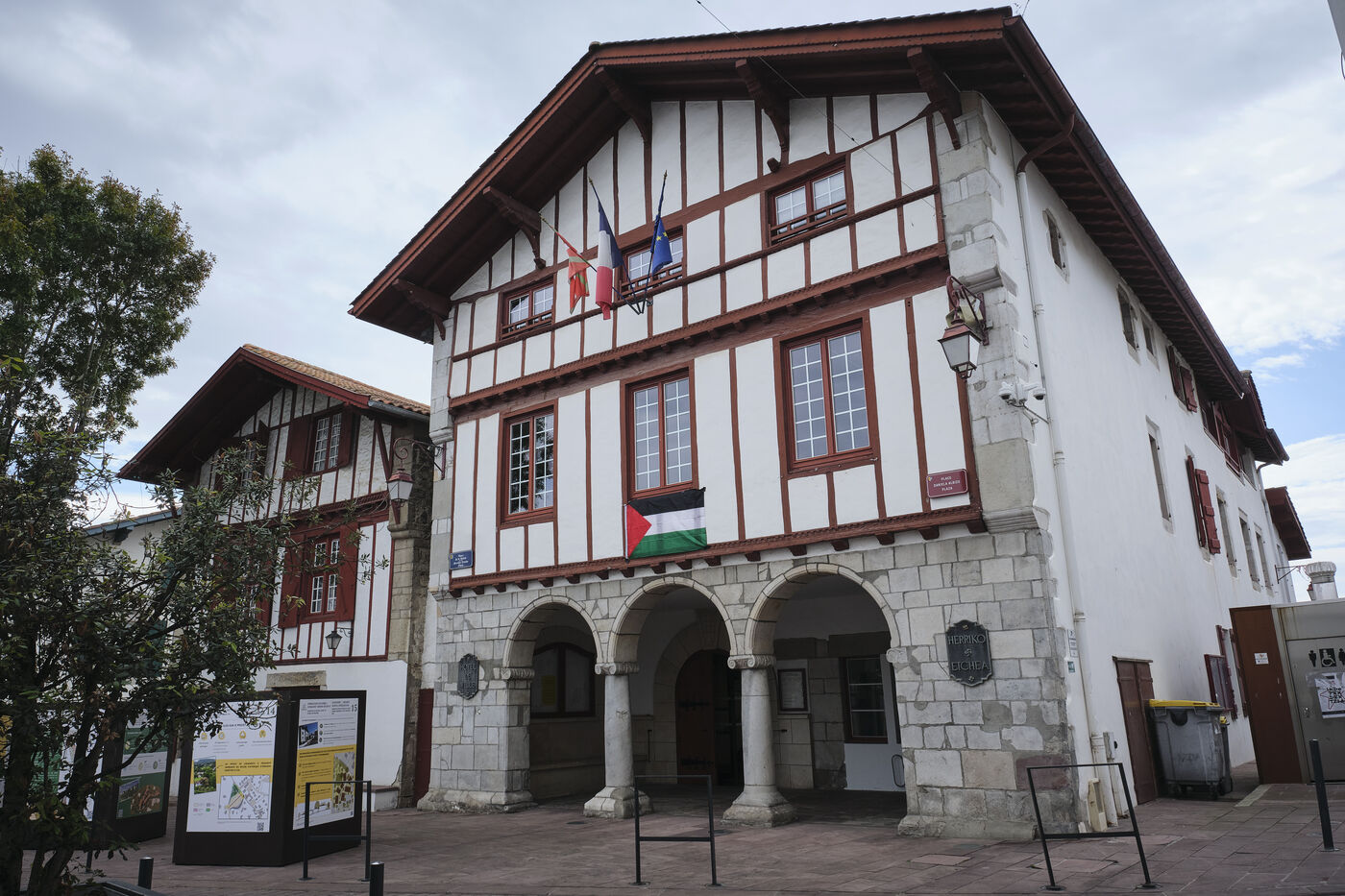 Hôtel de ville d'Urrugne avec le drapeau palestinien