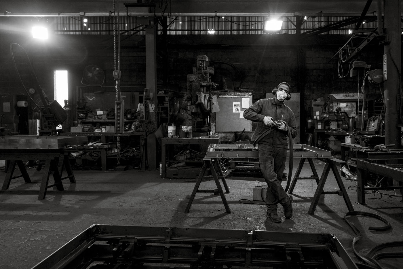 Voici une petite sélection sur les quarante photographies en noir et blanc qui composent la série, volontairement contrastées, à la composition géométrique, parfois minimaliste, parfois exagérément surchargée, cherchent à mettre en relief l'environnement de ces femmes et de ces hommes à leur poste de travail, en jouant sur la disproportion de l'un par rapport à l'autre, sur le côté convivial de ces lieux ou au contraire sur leur côté hostile. Ces photos ont été faites en octobre 2016 en région toulousaine, dans le sud-ouest de la France.