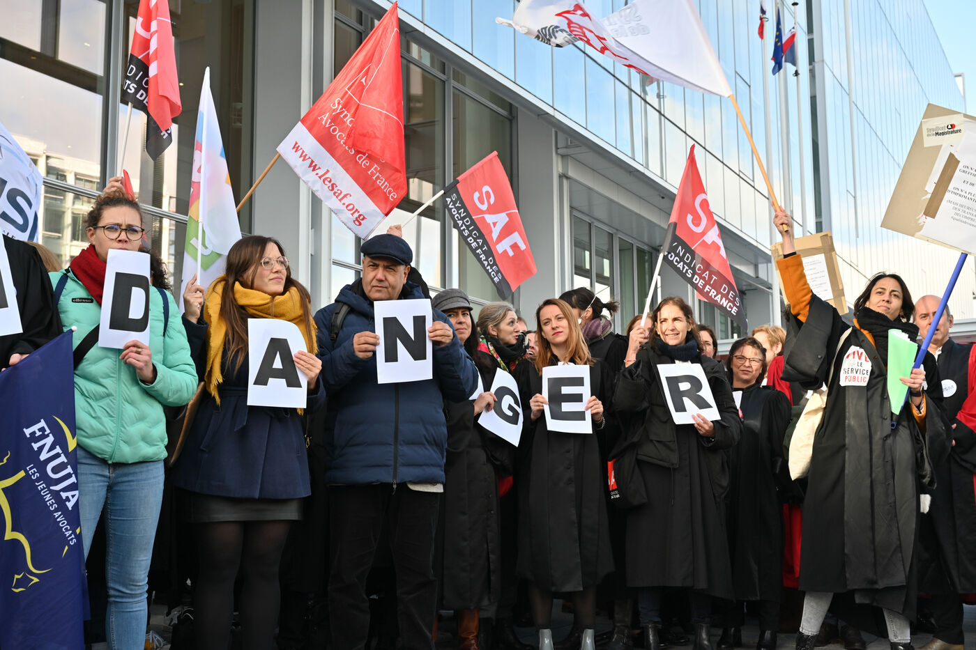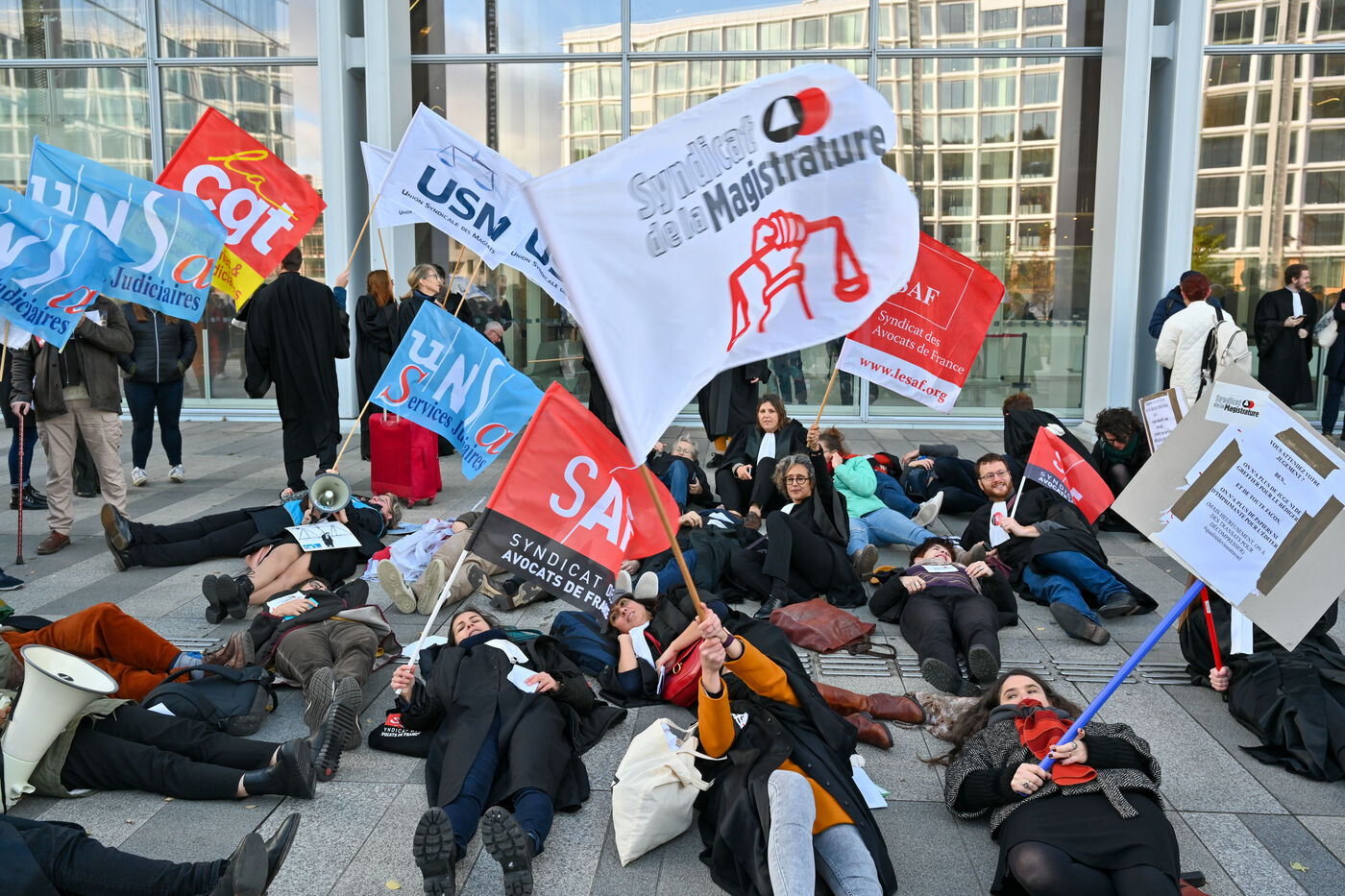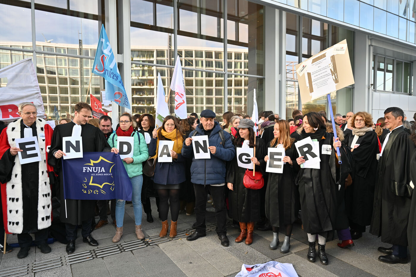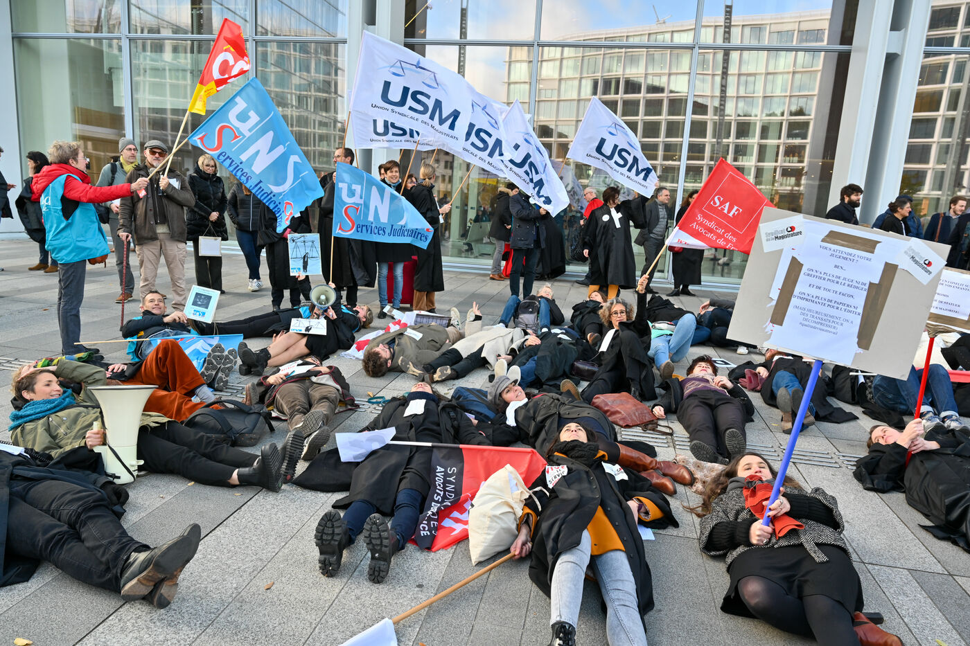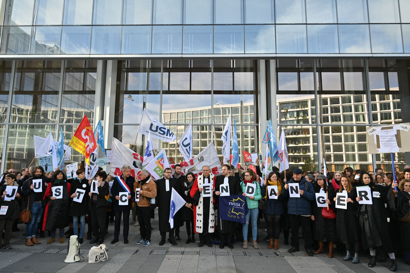 A Paris devant le tribunal judiciaire, les magistrats, avocats et greffiers se mobilisent pour dire le ras-le-bol d'une profession confrontée à une "charge de travail titanesque".
