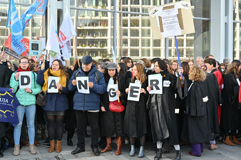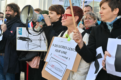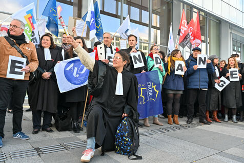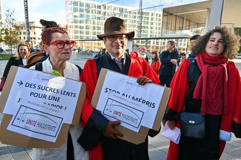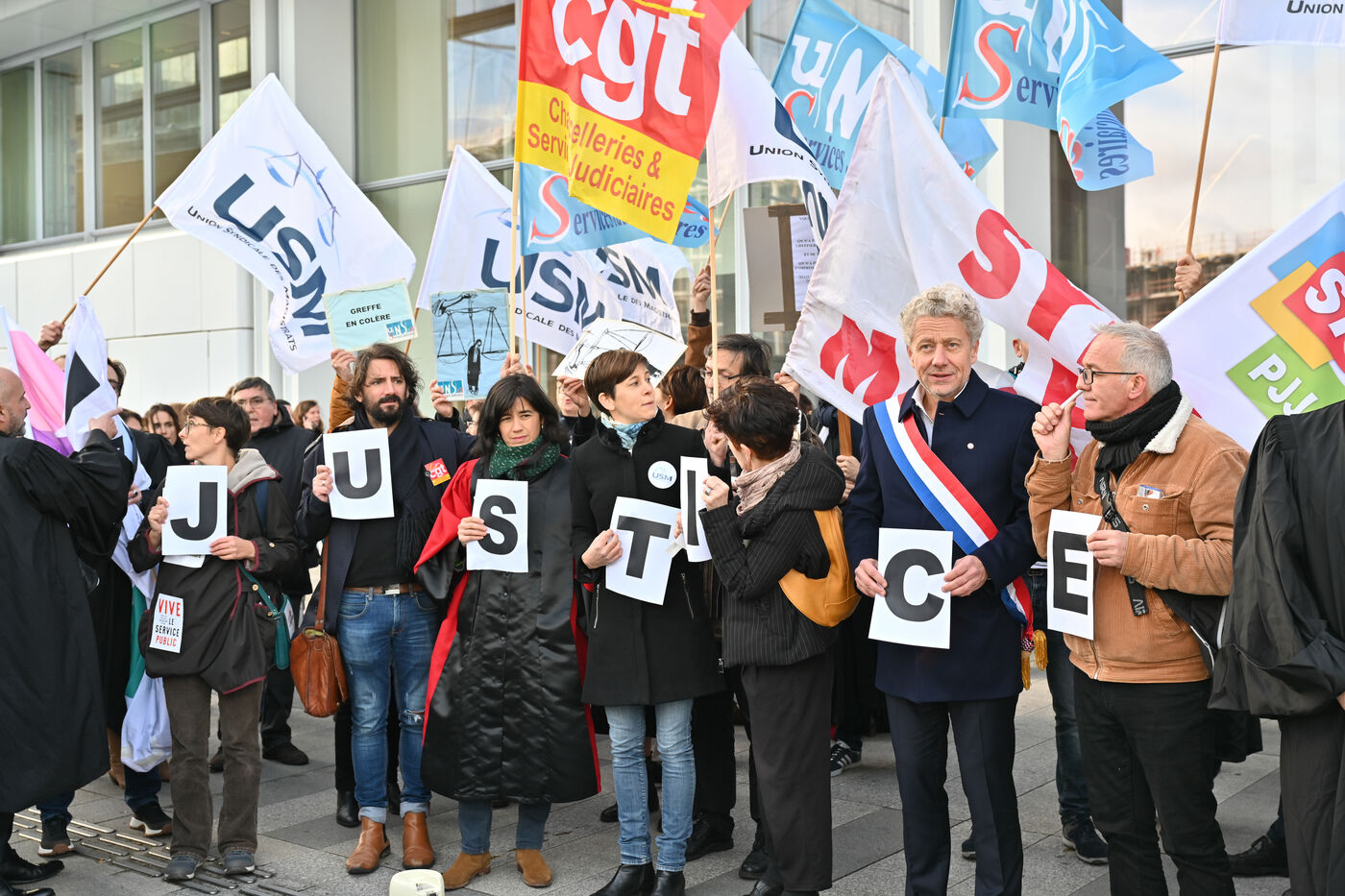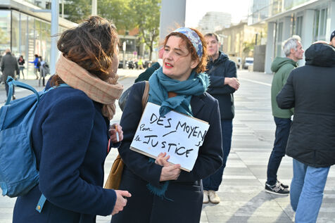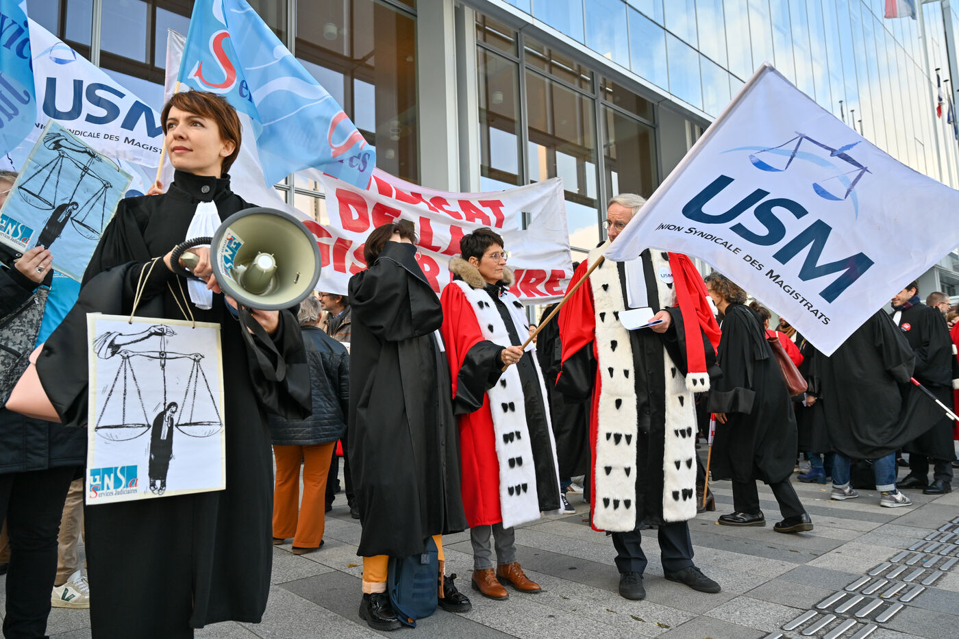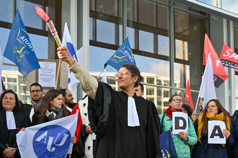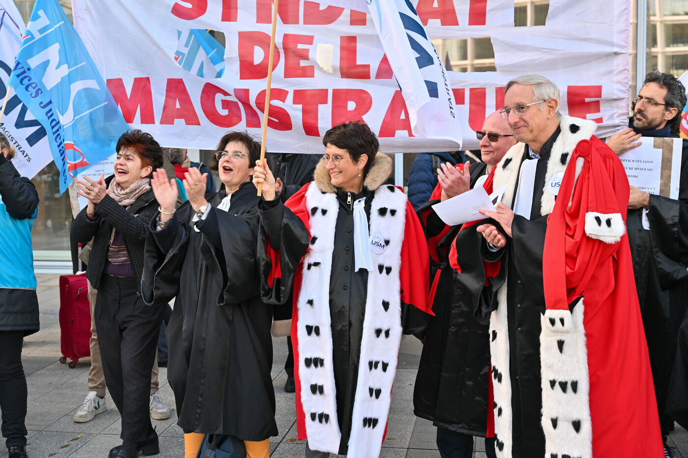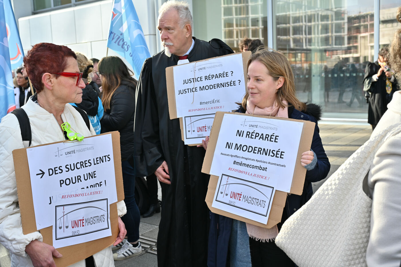 A Paris devant le tribunal judiciaire, les magistrats, avocats et greffiers se mobilisent pour dire le ras-le-bol d'une profession confrontée à une "charge de travail titanesque".