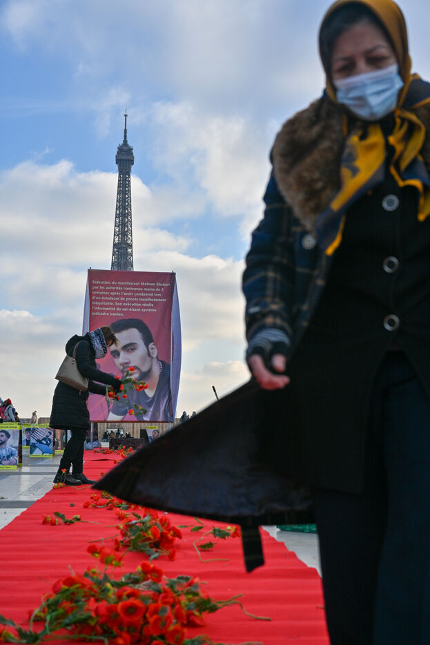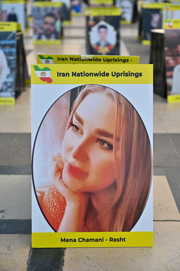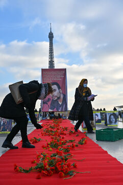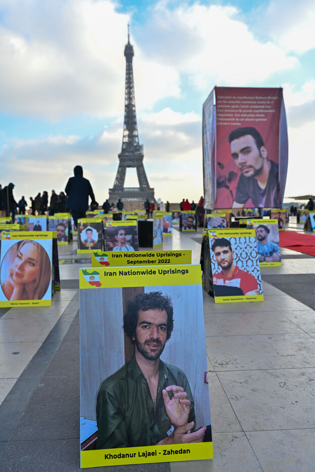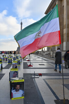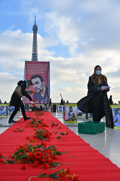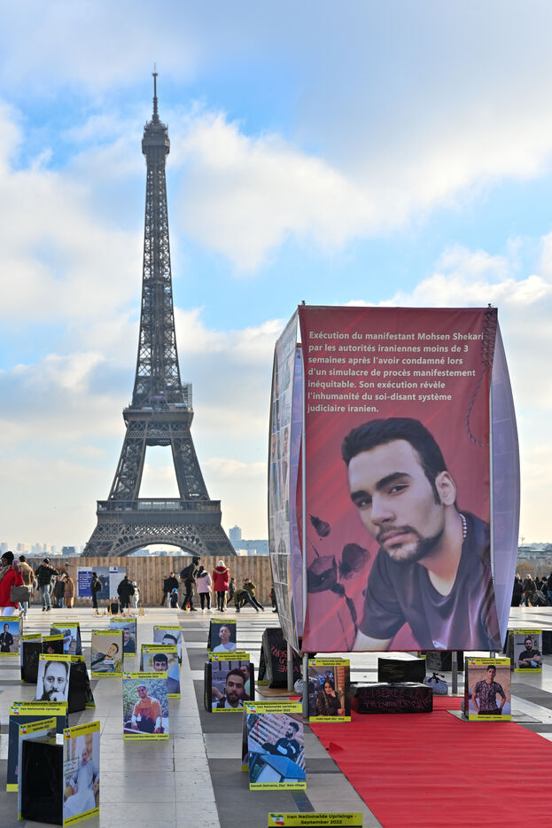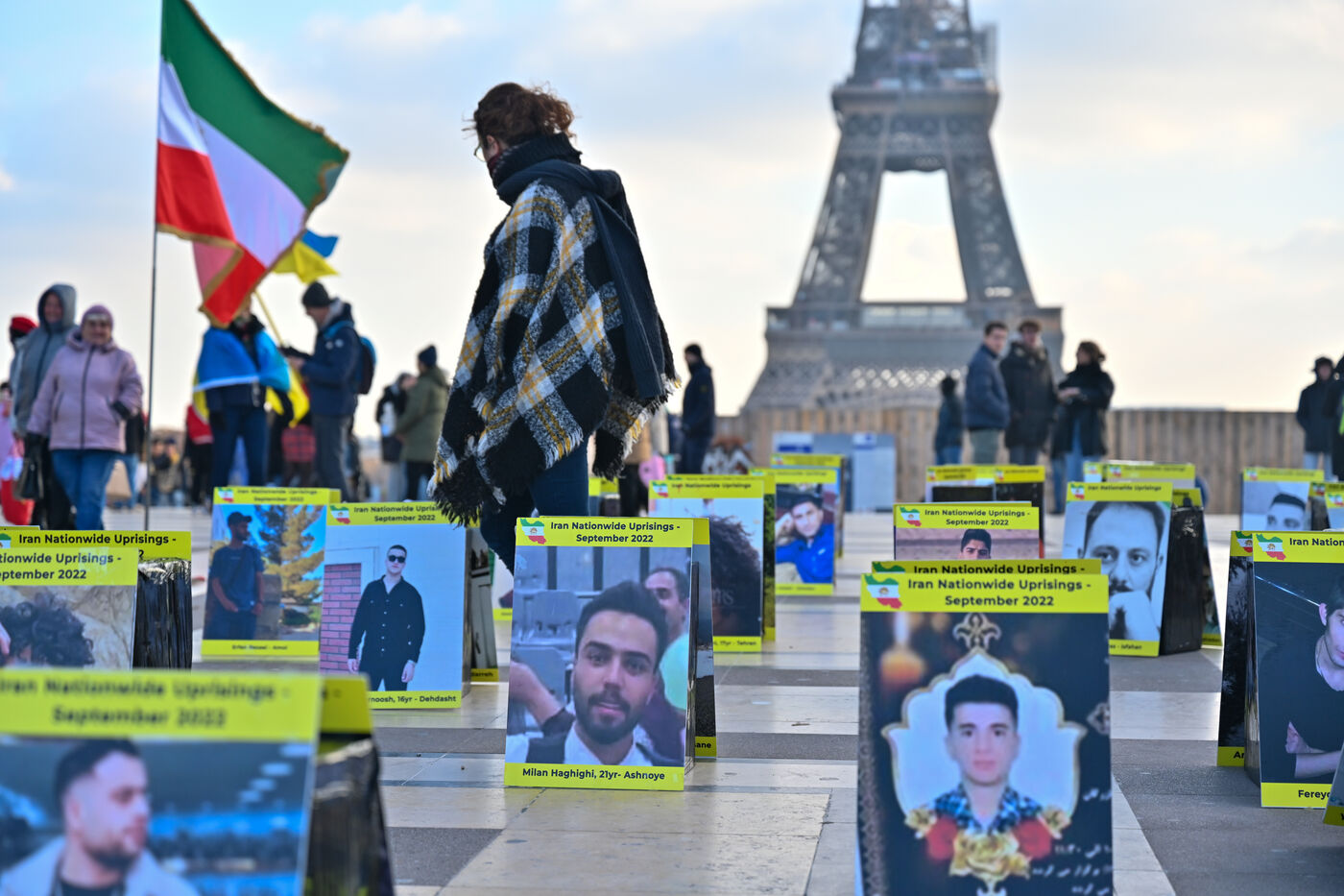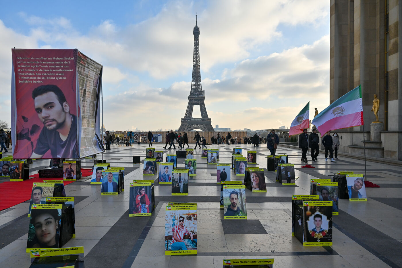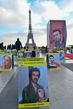 Manifestation en soutien au soulèvement en Iran, sur le parvis des droits de l homme au Trocadero. Y sont exposés les portraits des victimes de la police et de l Etat iranien.